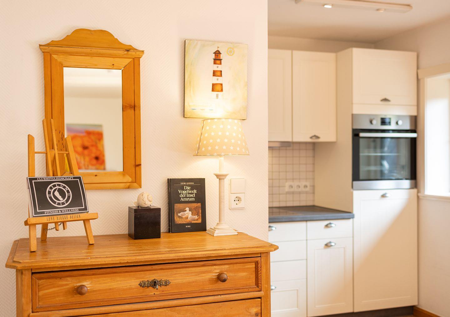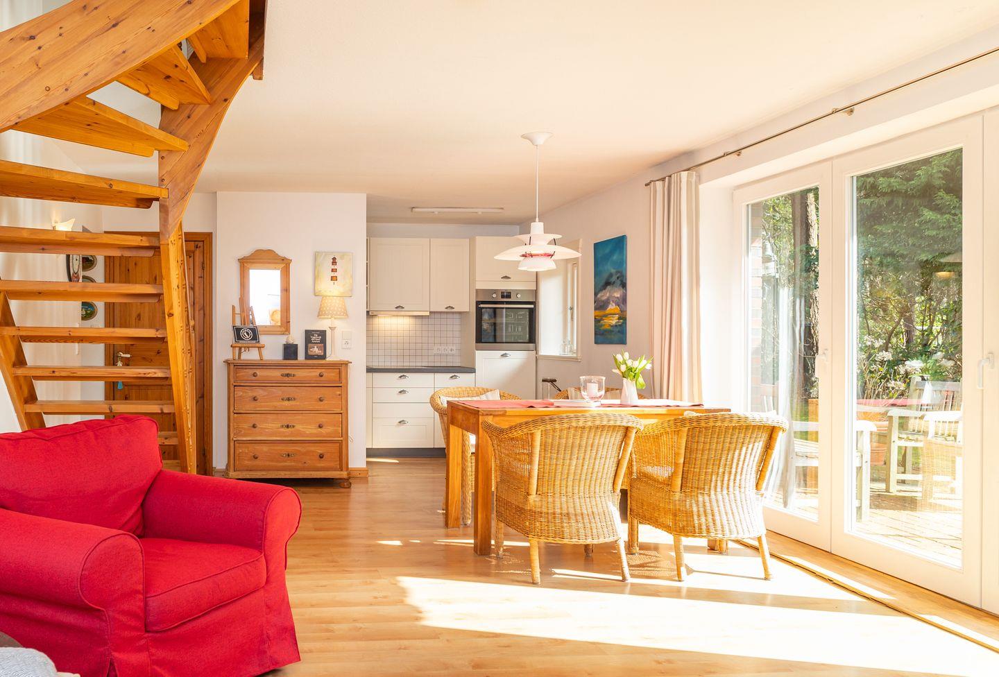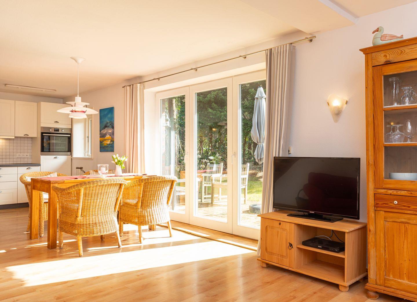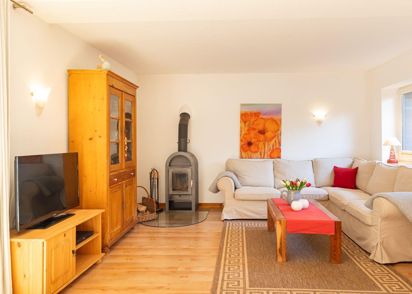Das 4-Sterne-Haus bietet Ihnen allen Komfort für bis zu 4 Personen mit Wohnzimmer, Küche, Bad, Gäste WC, zwei separaten Schlafzimmern und einem gemütlichen dänischen Ofen. Das Haus ist sehr liebevoll zum Teil mit antiken Möbeln eingerichtet und verfügt über einen großen Plasma-TV und Radio mit CD-Player. Die sehr großzügige Küche enthält einen Geschirrspüler und Backofen.Tisch- und Bettwäsche sowie Handtücher werden gestellt. Waschmaschine und Trockner sind am Haus und kostenfrei nutzbar. Gepflegte Fahrräder stehen zu Ihrer freien Nutzung bereit.