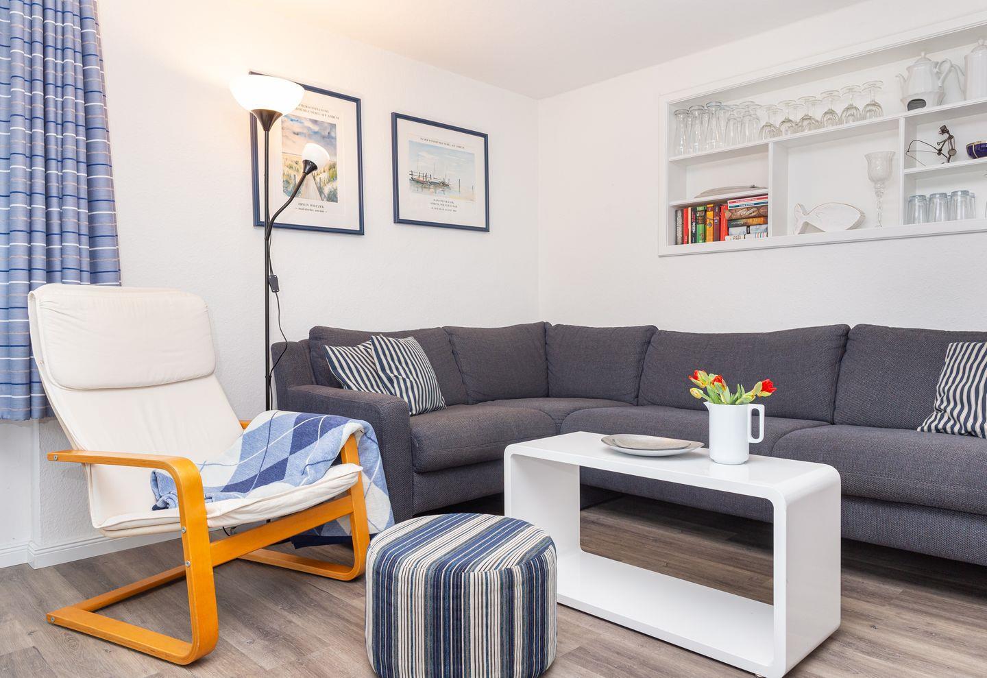Das kleine Haus der Familie Petersen liegt in Nebel im Ortsteil Westerheide. Dort machen Sie Urlaub in unmittelbarer Nähe zum Wald der Nordseeinsel Amrum. Es ist von einem großen Garten umgeben. In diesem süßen Ferienhaus können Sie mit 5 Personen Ihren Urlaub verleben. Es verfügt über ein Doppelbettschlafzimmer, zwei separate Schlafzimmer, Gäste WC, Bad, eine Küche mit Terrasse und ein Wohnzimmer. Im kleinen Haus verbringen Sie Ihren Urlaub auf zwei Ebenen.