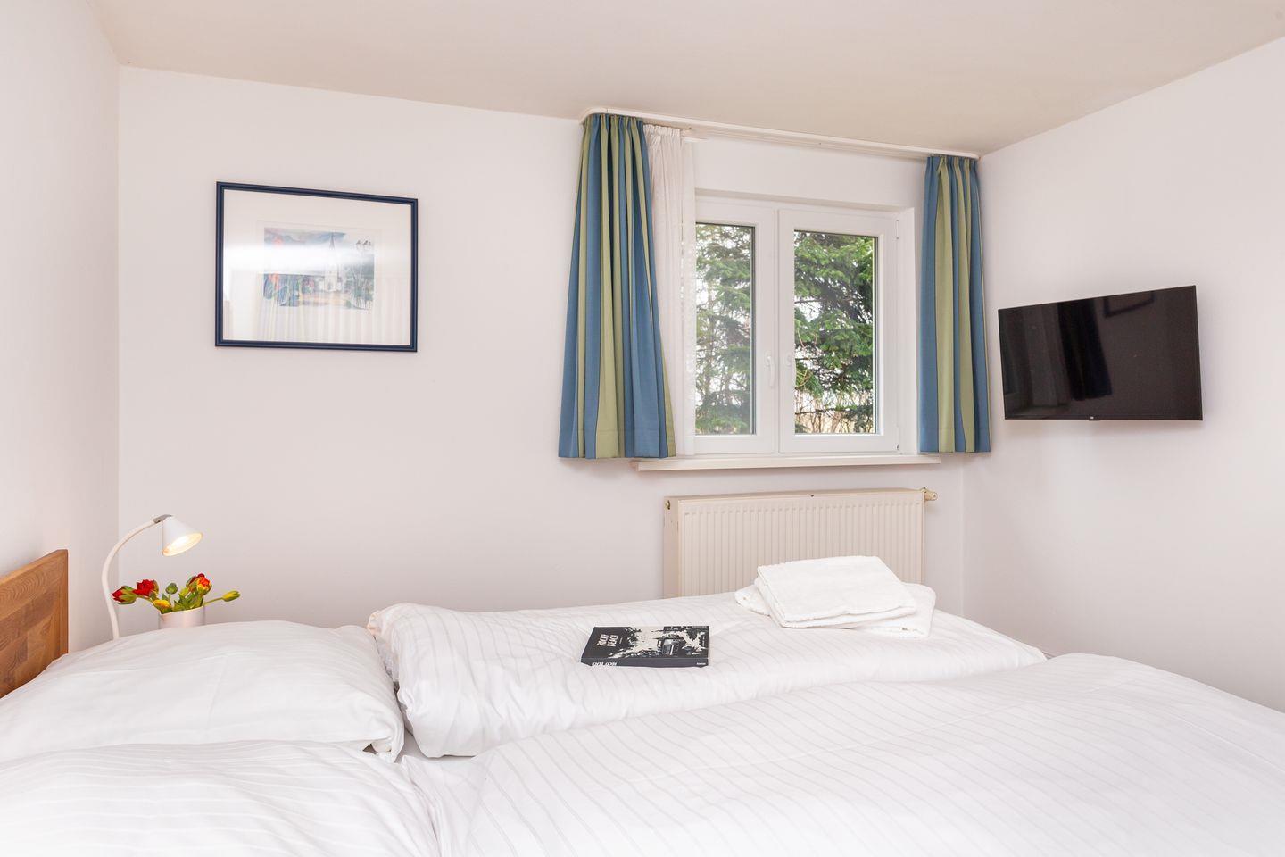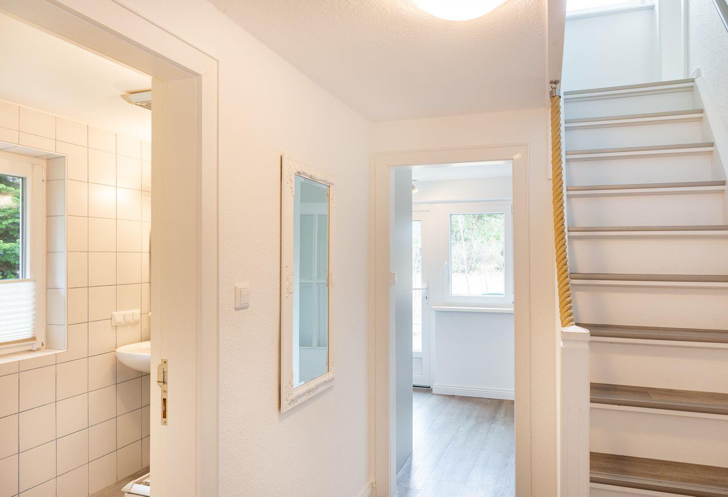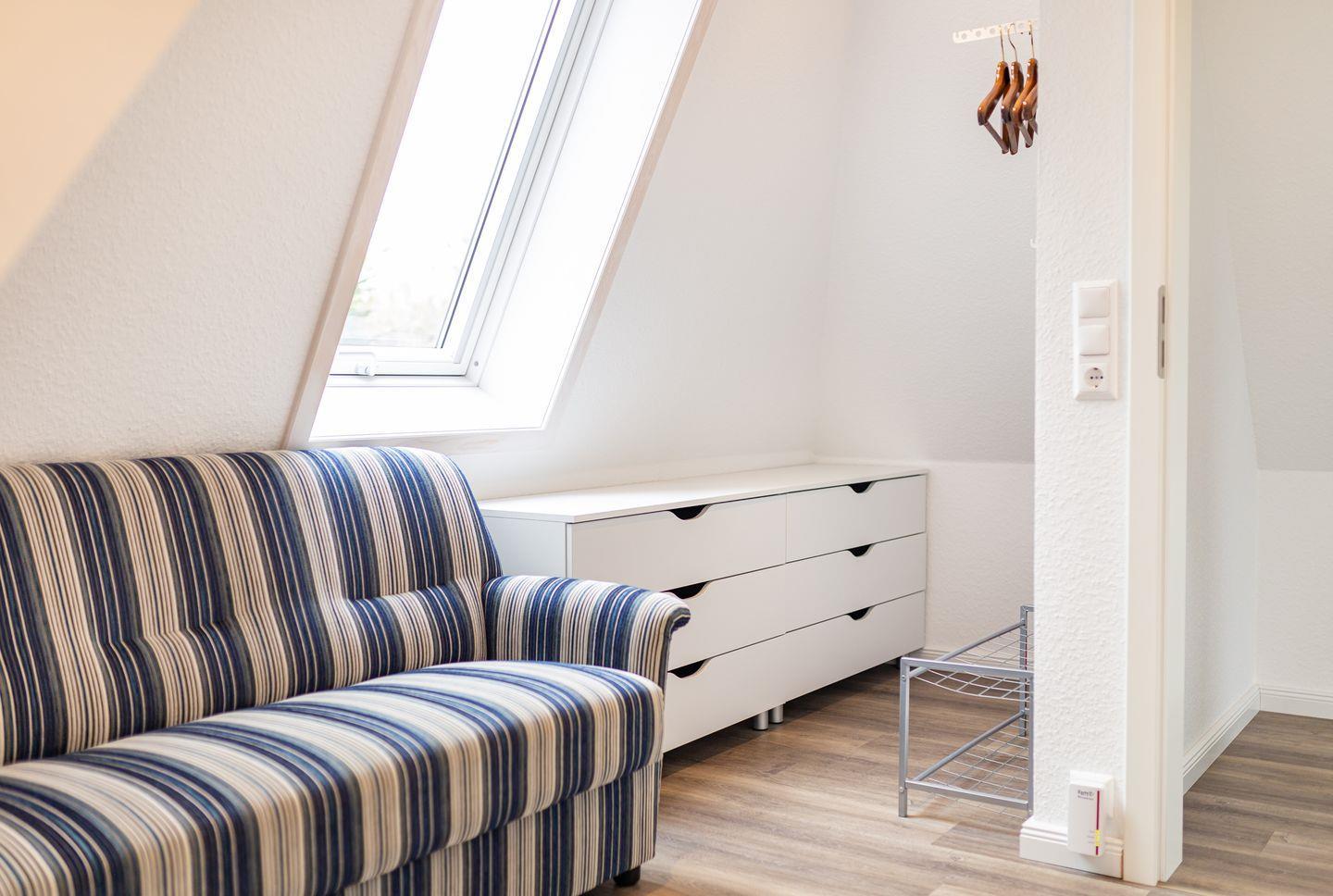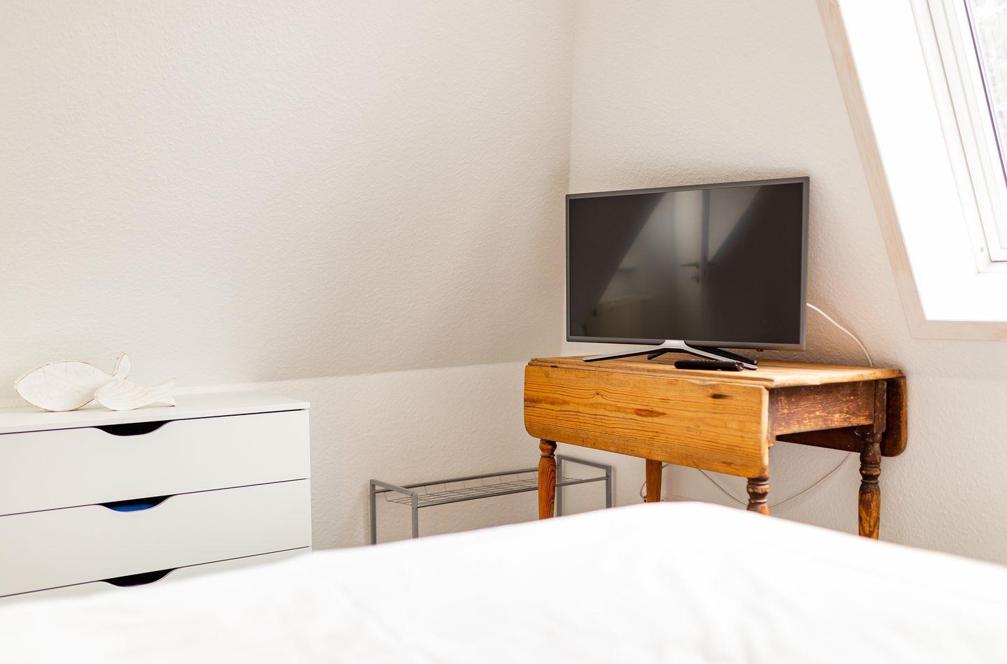 Das kleine Haus der Familie Petersen liegt in Nebel im Ortsteil Westerheide. Dort machen Sie Urlaub in unmittelbarer Nähe zum Wald der Nordseeinsel Amrum. Es ist von einem großen Garten umgeben, der Ihnen zur Verfügung steht. In diesem süßen Ferienhaus können Sie mit 5 Personen Ihren Urlaub verleben. Es verfügt über ein Doppelbettschlafzimmer, zwei separate Schlafzimmer, Gäste WC, Bad, eine Küche mit Terrasse und ein Wohnzimmer. Im kleinen Haus verbringen Sie Ihren Urlaub auf zwei Ebenen. Das Wohnzimmer mit einem Sofa, einem Sessel und einem Flachbild TV, sowie einem schönen Essplatz ausgestattet. Die separate Küche ist mit einem 4-Platten-Ceran-Kochfeld, einem Backofen, Kühlschrank, Spülmaschine und Toaster, Kaffeemaschine, Wasserkocher und Küchenutensilien ausgestattet. Im Bad finden Sie das WC, eine Dusche, Waschbecken und einen Fön. Es gibt im kleinen Haus ein zusätzliches Gäste WC. In der oberen Etage befinden sich zwei weitere Schlafzimmer. Eines ist mit einem Einzelbett möbliert. Das zweite Schlafzimmer ist mit einem Doppelbett ausgestattet.