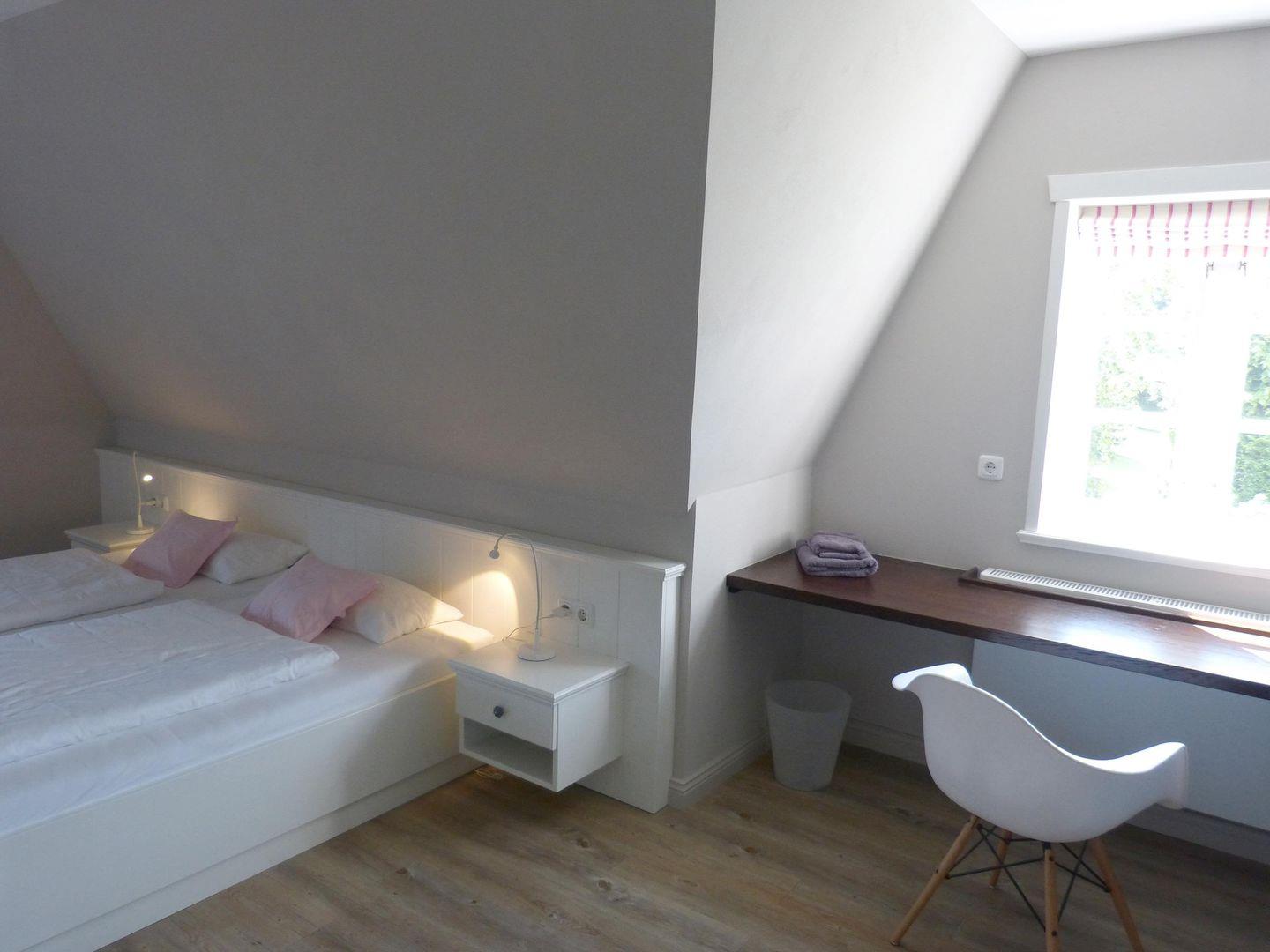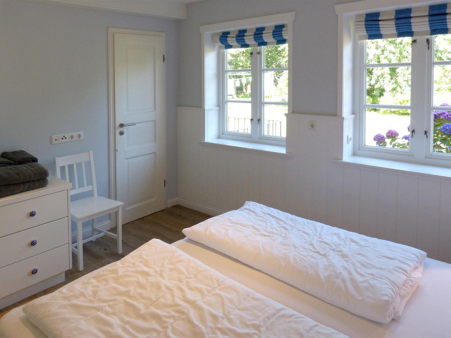 Die 4-Zimmer-Friesenhaushälfte *Steuerbord* unter Reet (ca. 110 qm Grundfläche) über 2 Etagen im Strandweg 8 in Süddorf auf Amrum bietet Schlafmöglichkeiten für 2 bis 6 Personen.