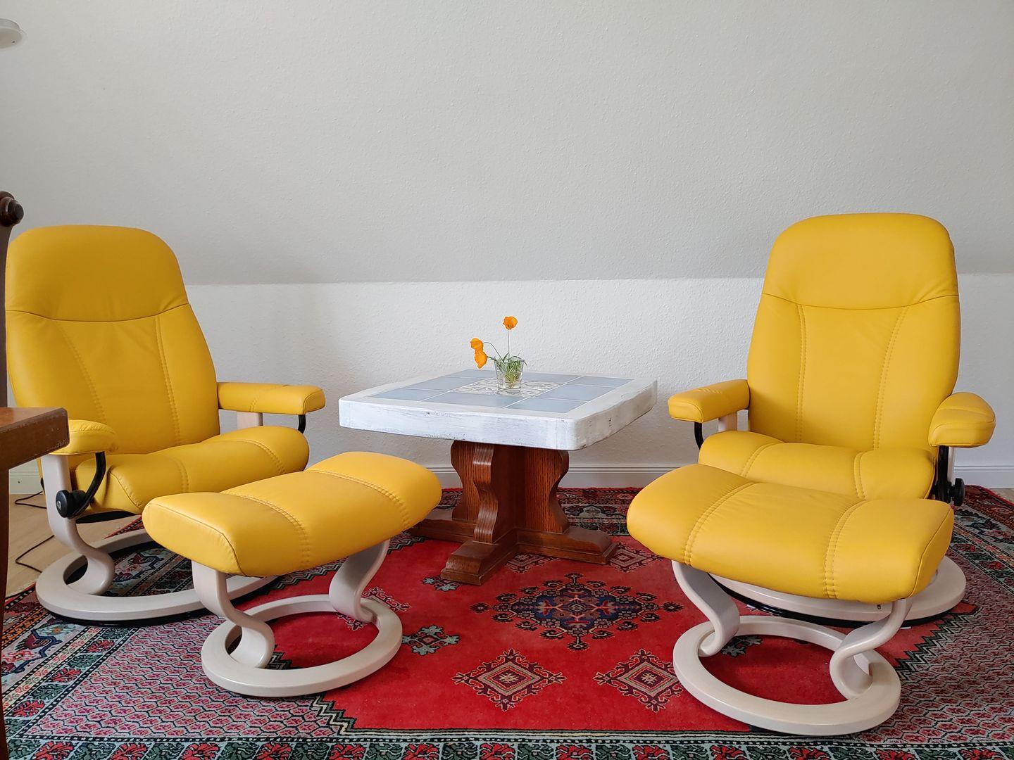 Die Ferienwohnung „Gül Waanang" (Friesisch: Gelbe Wohnung) im 1. Obergeschoss in „Erika's Hüs" in Nebel auf Amrum ist eine 3-Zimmer-Ferienwohnung (ca. 53 qm Grundfläche) mit Schlafmöglichkeiten für 1 bis 4 Personen.