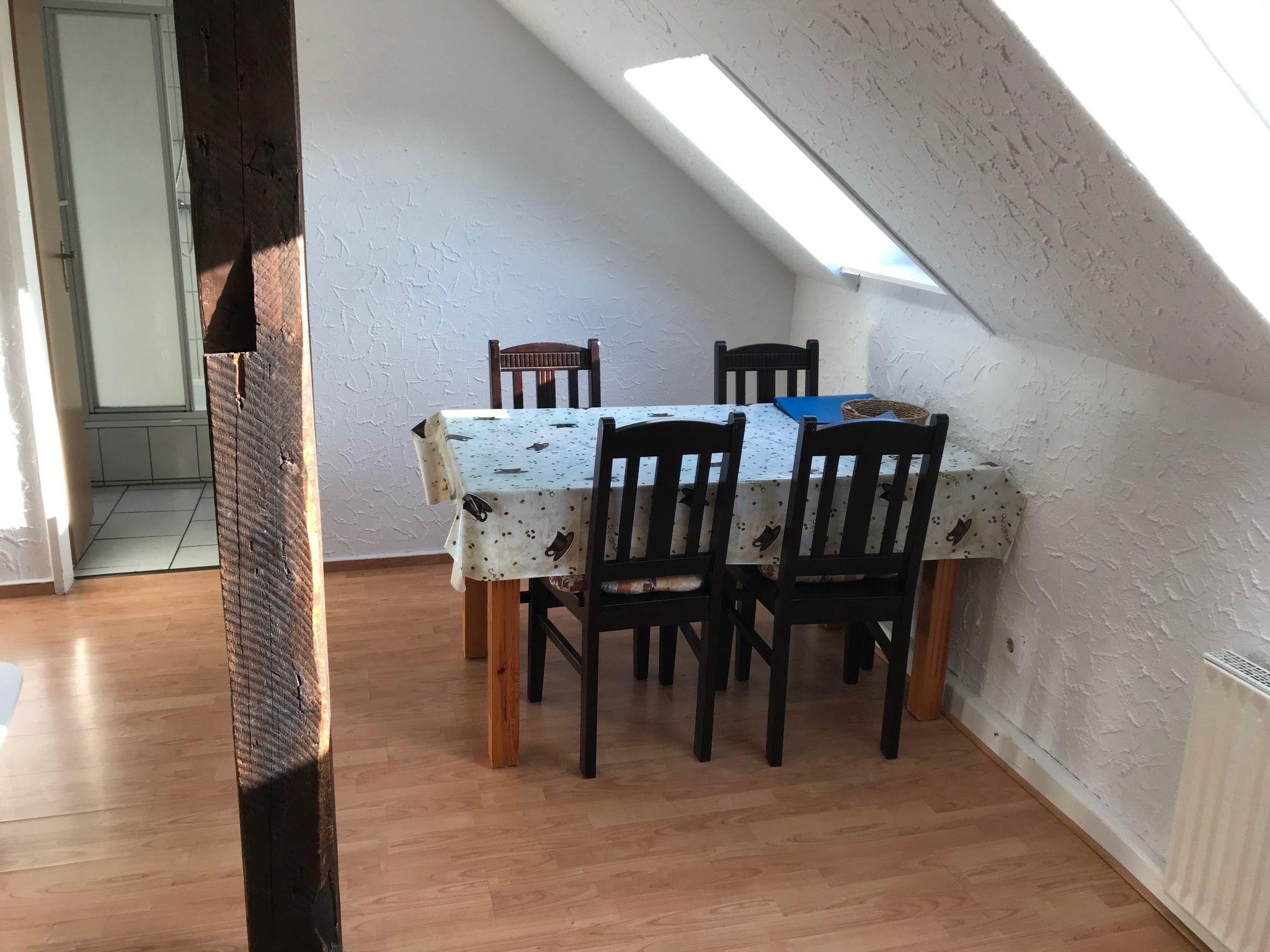 Herzlich Willkommen in Ihrer Ferienunterkunft in der ersten Etage. Die 48m² große Wohnung hat ein Schlafzimmer, eine Wohnküche und ein Badezimmer mit Dusche. Nehmen Sie auf dem Sofa Platz, schauen Sie Sat.-TV inkl. Radio oder genießen Sie Ihr Essen am Esstisch mit vier Stühlen. In der Küchenzeile sind Wasserkocher, Kaffeemaschine, Handmixer, Herd, Backofen, Toaster, Kühlschrank, Geschirr, Besteck, Pfannen und Töpfe vorhanden. Im Schlafzimmer finden Sie ein Doppelbett mit zwei einzelnen Matratzen vor. Rechts und links befindet sich ein Nachtschränkchen. Ihre Kleidung können sie problemlos in den Kleiderschrank legen. Das Badezimmer verfügt über Dusche, WC und Waschbecken. Kinder bis sechs Jahre übernachten kostenfrei. Es besteht Zentralheizung, Heizkörper finden Sie in den Räumen.