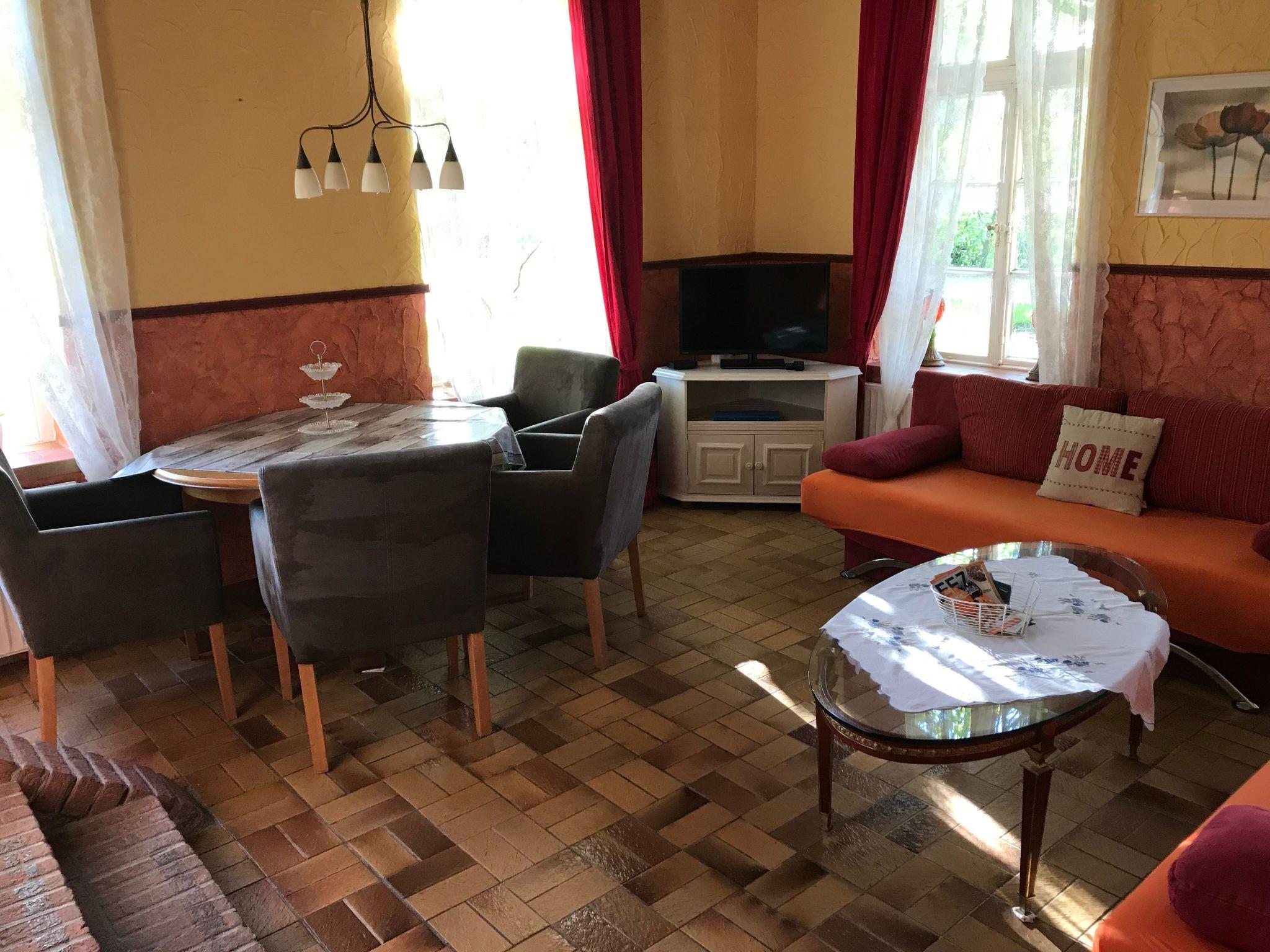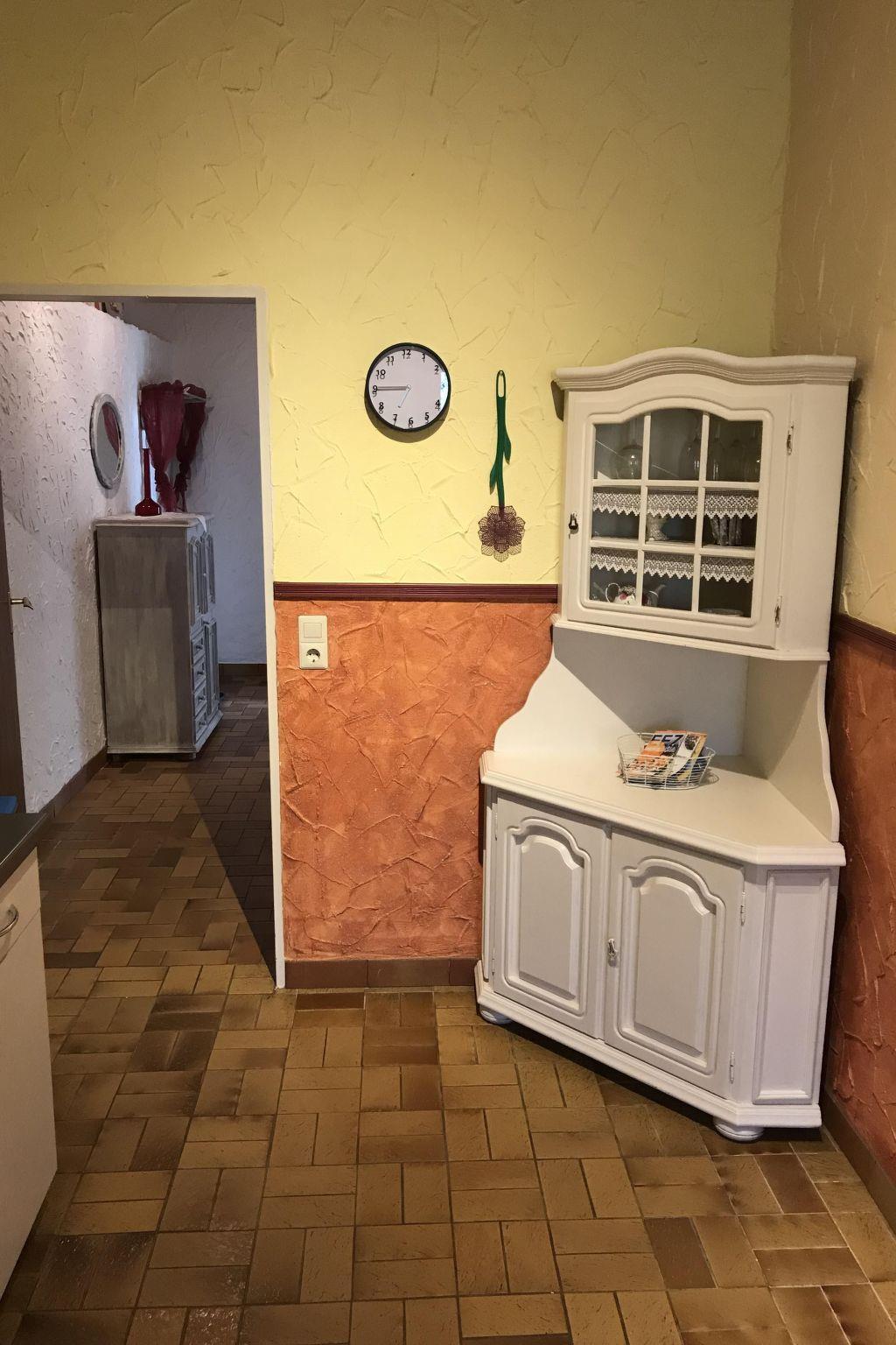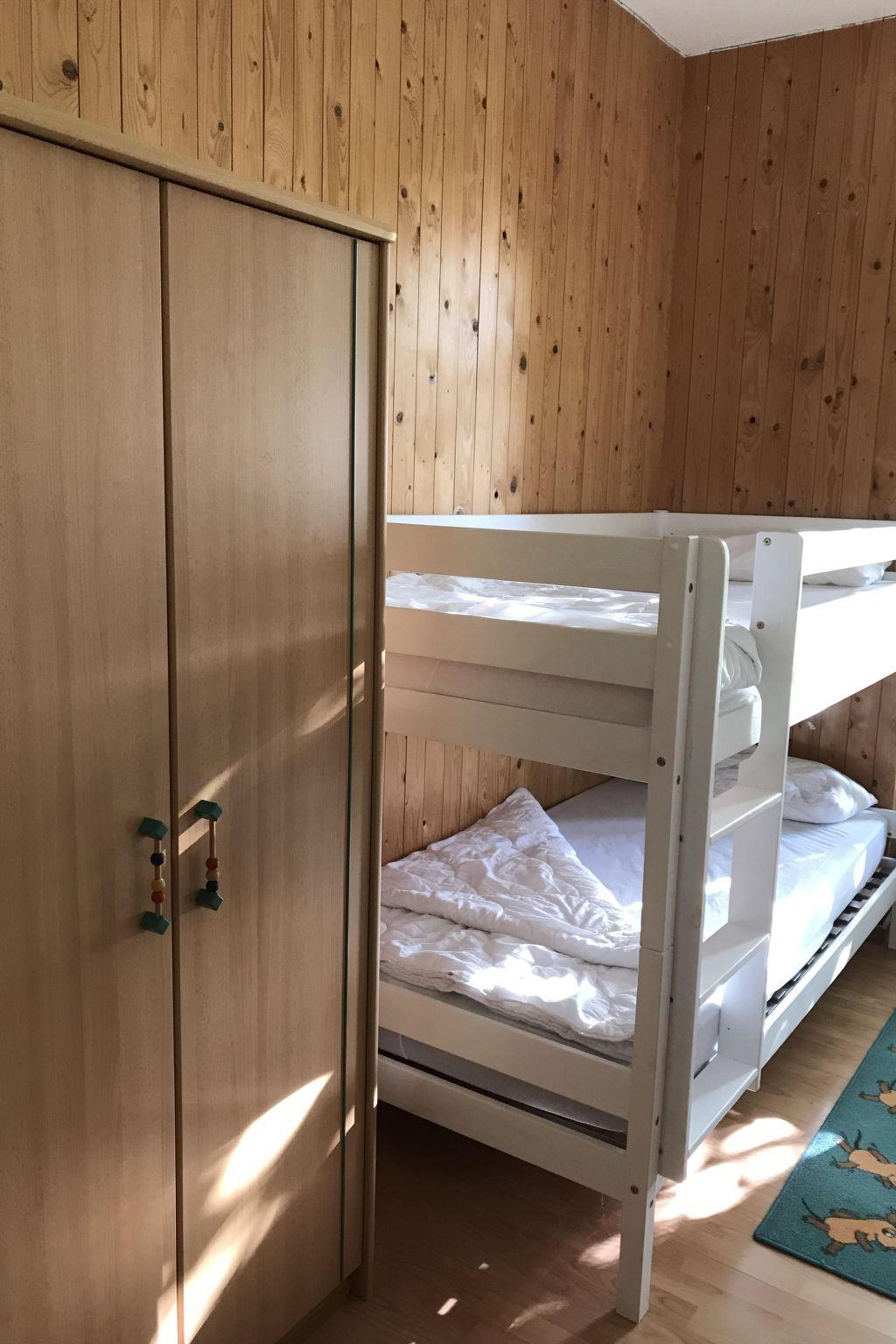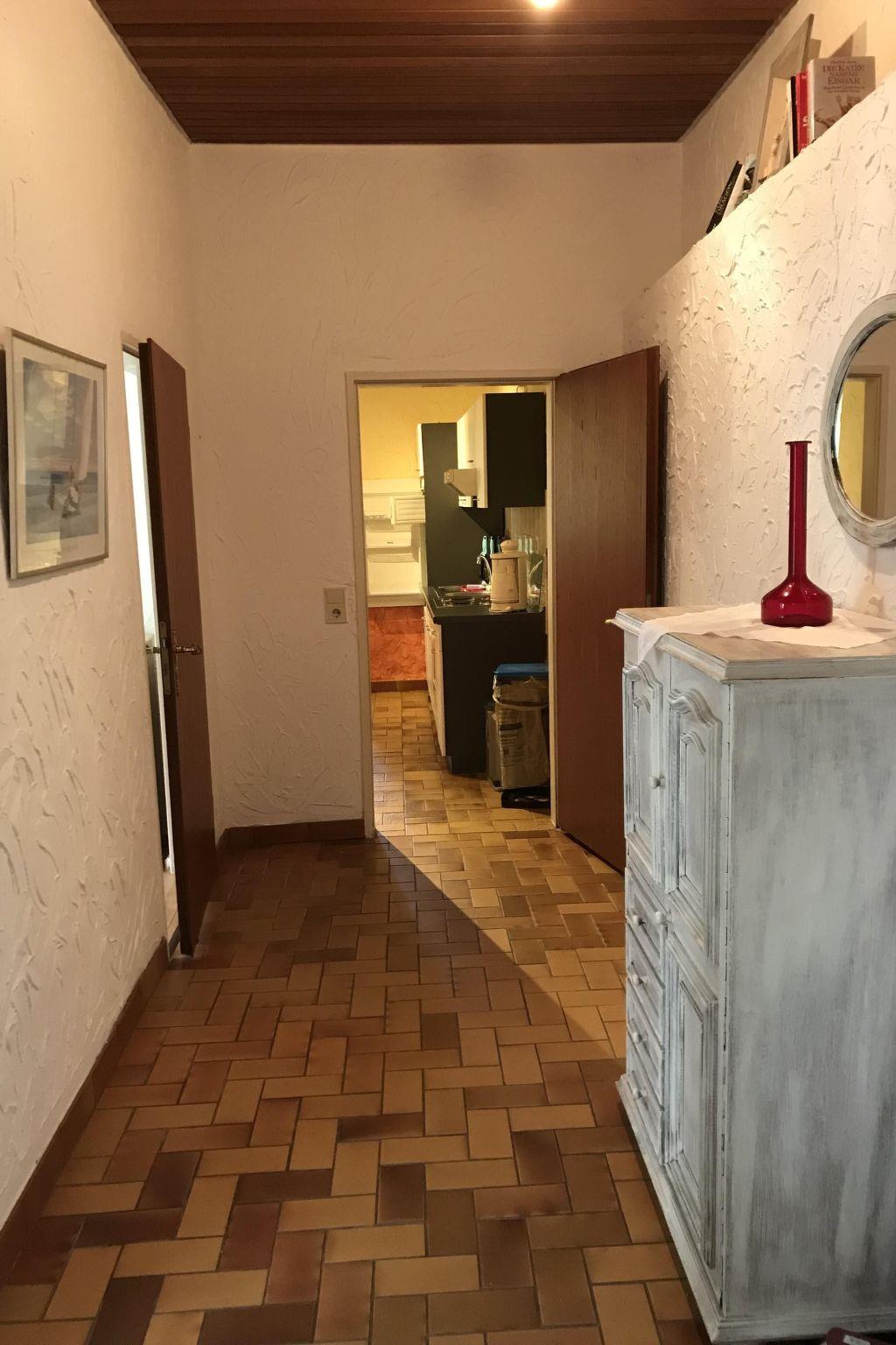 Herzlich Willkommen in Ihrer Ferienunterkunft im Erdgeschoss. Die 60m² große Wohnung hat zwei Schlafzimmer, ein Wohnzimmer, eine Küche und ein Badezimmer mit Dusche. Nehmen Sie auf dem Sofa im Wohnzimmer Platz, schauen Sie Sat.-TV inkl. Radio oder genießen Sie Ihr Essen am Esstisch mit vier Stühlen. In der Küche sind Wasserkocher, Kaffeemaschine, Handmixer, Herd, Backofen, Toaster, Kühlschrank, Geschirr, Besteck, Pfannen und Töpfe vorhanden. Im ersten Schlafzimmer finden Sie ein Doppelbett mit zwei einzelnen Matratzen vor, im zweiten ein Etagenbett. Ihre Kleidung können sie problemlos in den Kleiderschrank legen. Das Badezimmer verfügt über Dusche, WC und Waschbecken. Kinder bis sechs Jahre übernachten kostenfrei. Es besteht Zentralheizung, Heizkörper finden Sie in den Räumen.