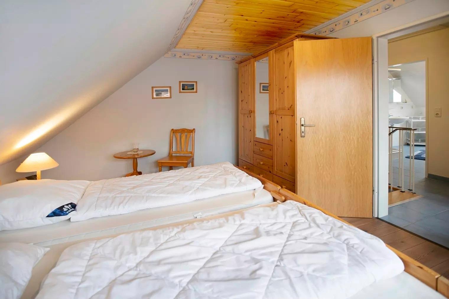Schlafzimmer 2 hat 2 Einzelbetten.
