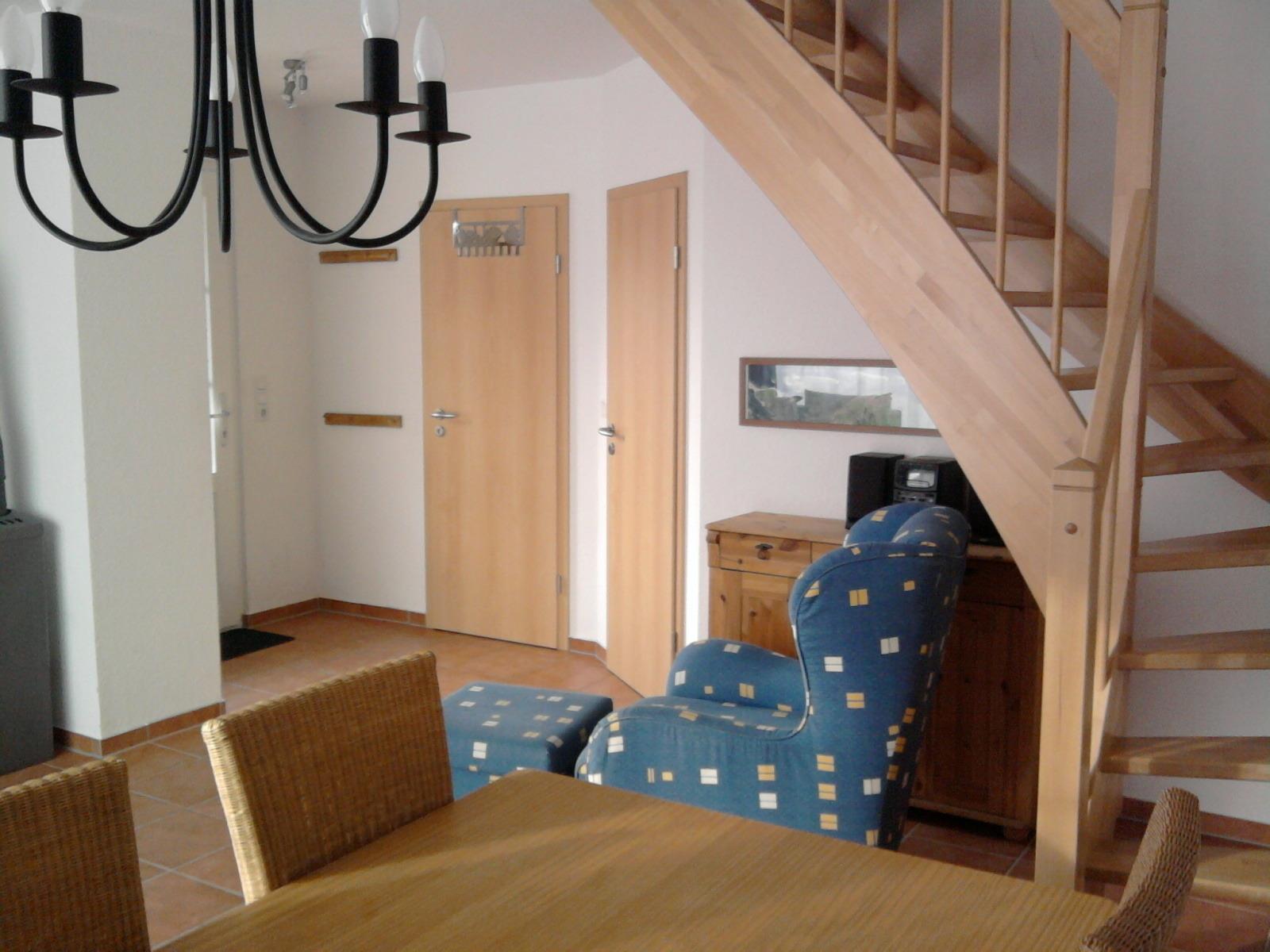 Im Erdgeschoss befindet sich das Wohnzimmer, die Küche und ein Bad mit bodengleicher Dusche und Waschmaschine.