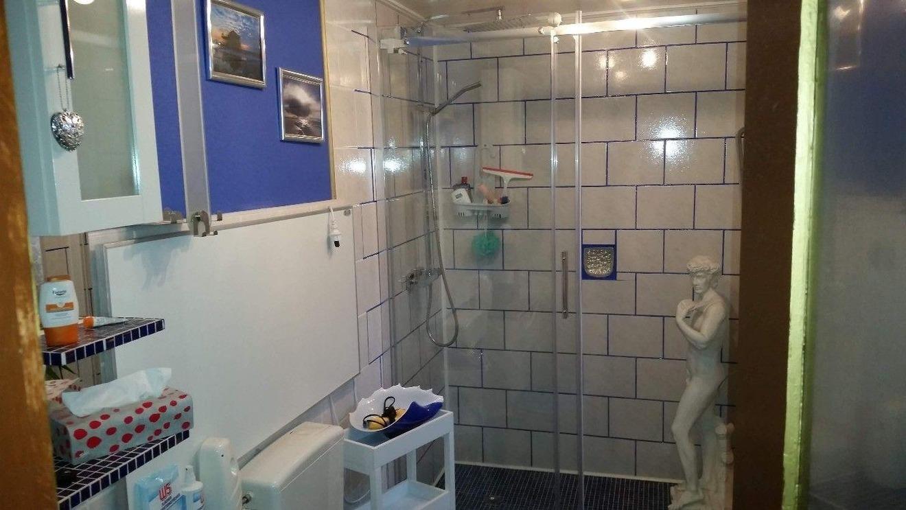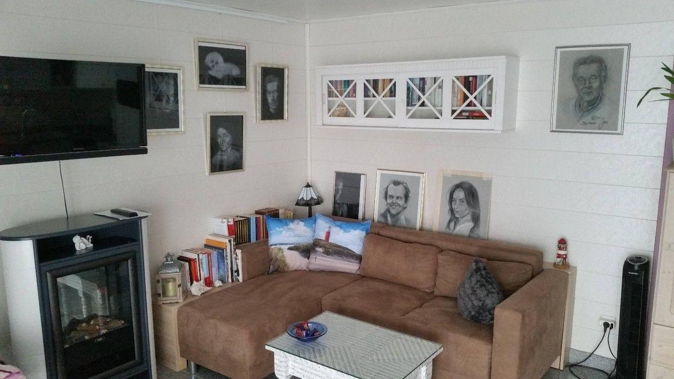 Der Hauptraum ist komplett mit Sofaecke und Koch-Essbereich sehr wertig eingerichtet. Der Schlafbereich ist mit einem stabilen Holzdoppelbett, getrennten Lattenrost und hochwertigen Matratzen mit medizinischen Schutzüberzügen eingerichtet. Das L-förmige Sofa bietet genügend Platz zum herumlümmeln. Der Koch- und Essbereich ist mit allen notwendigen Dingen ausgestattet. Ein Zweiplattenherd, kleiner Backofen, Kaffeemaschine, Toaster und Mikrowelle etc. ist ebenfalls vorhanden; selbstverständlich auch Geschirrtücher und vieles mehr.