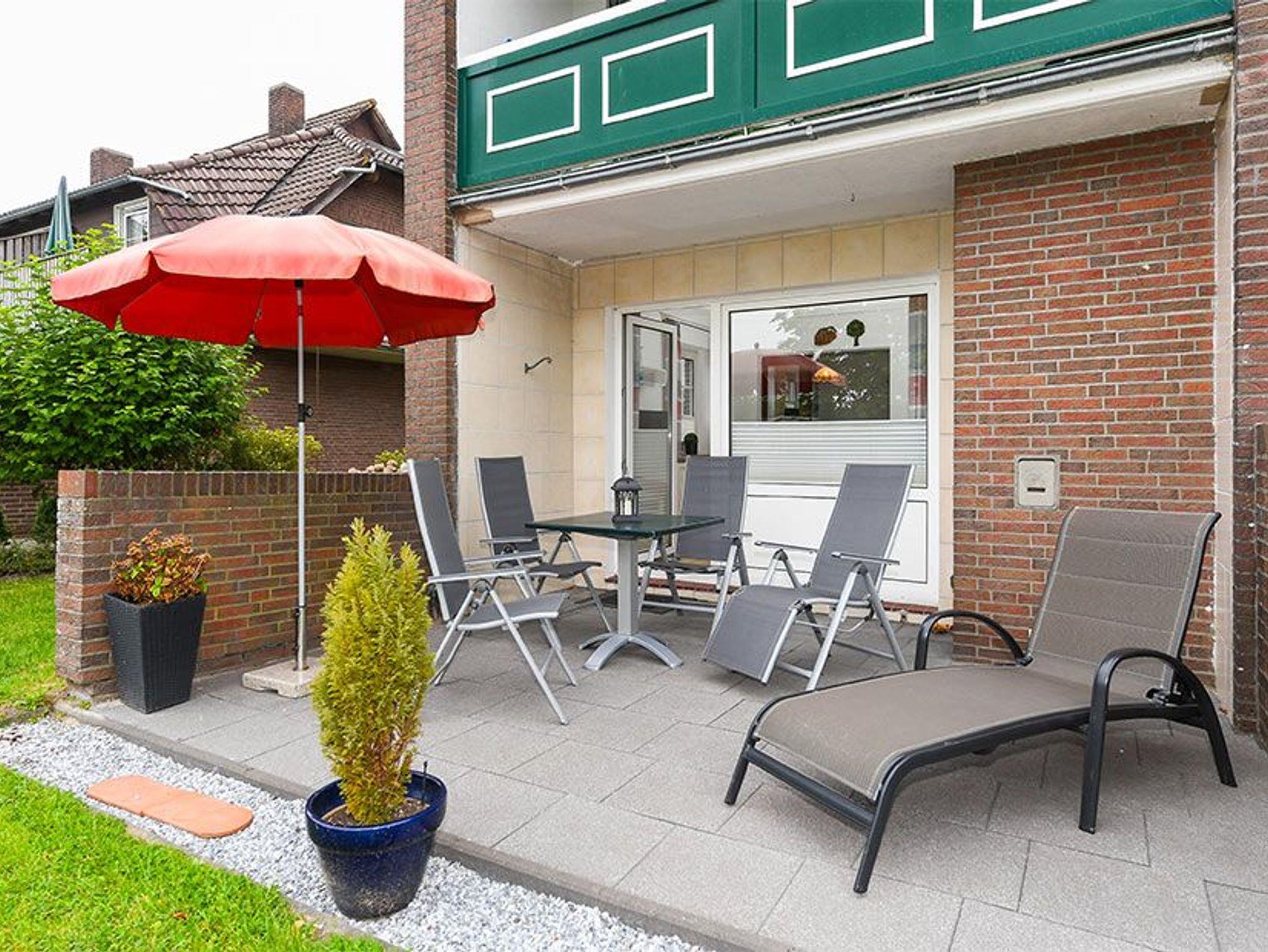 Ferienwohnung im Haus Katharina in Neuharlingersiel, nur 200 m vom Strand entfernt, ideal für einen ruhigen Nordseeurlaub.