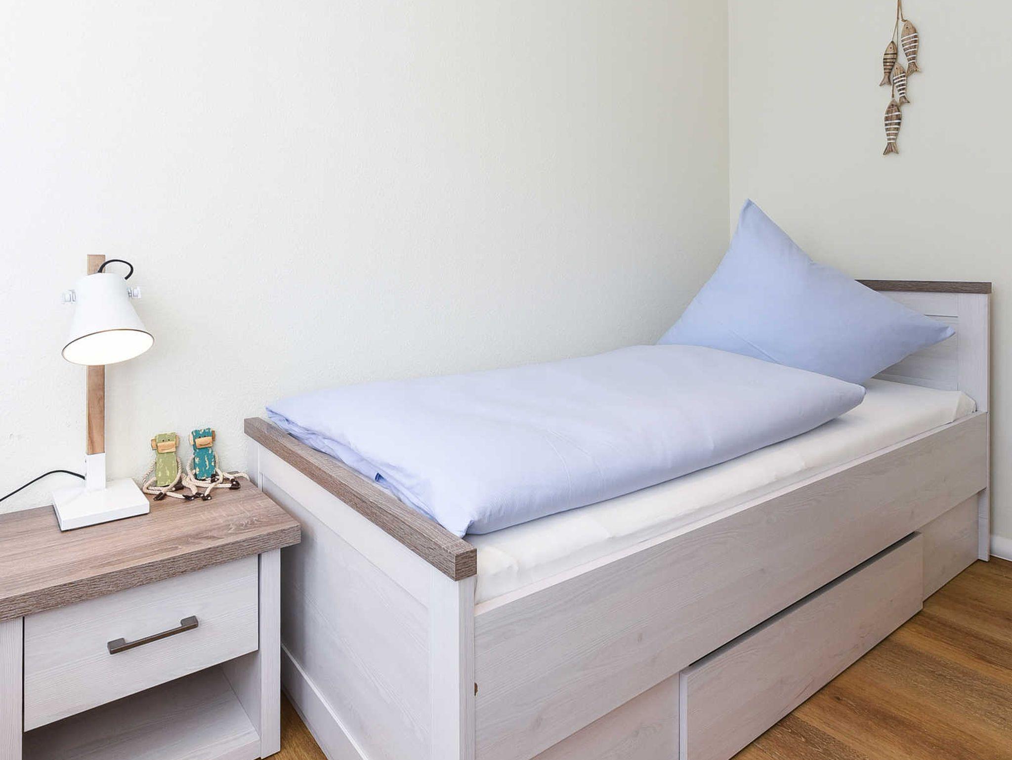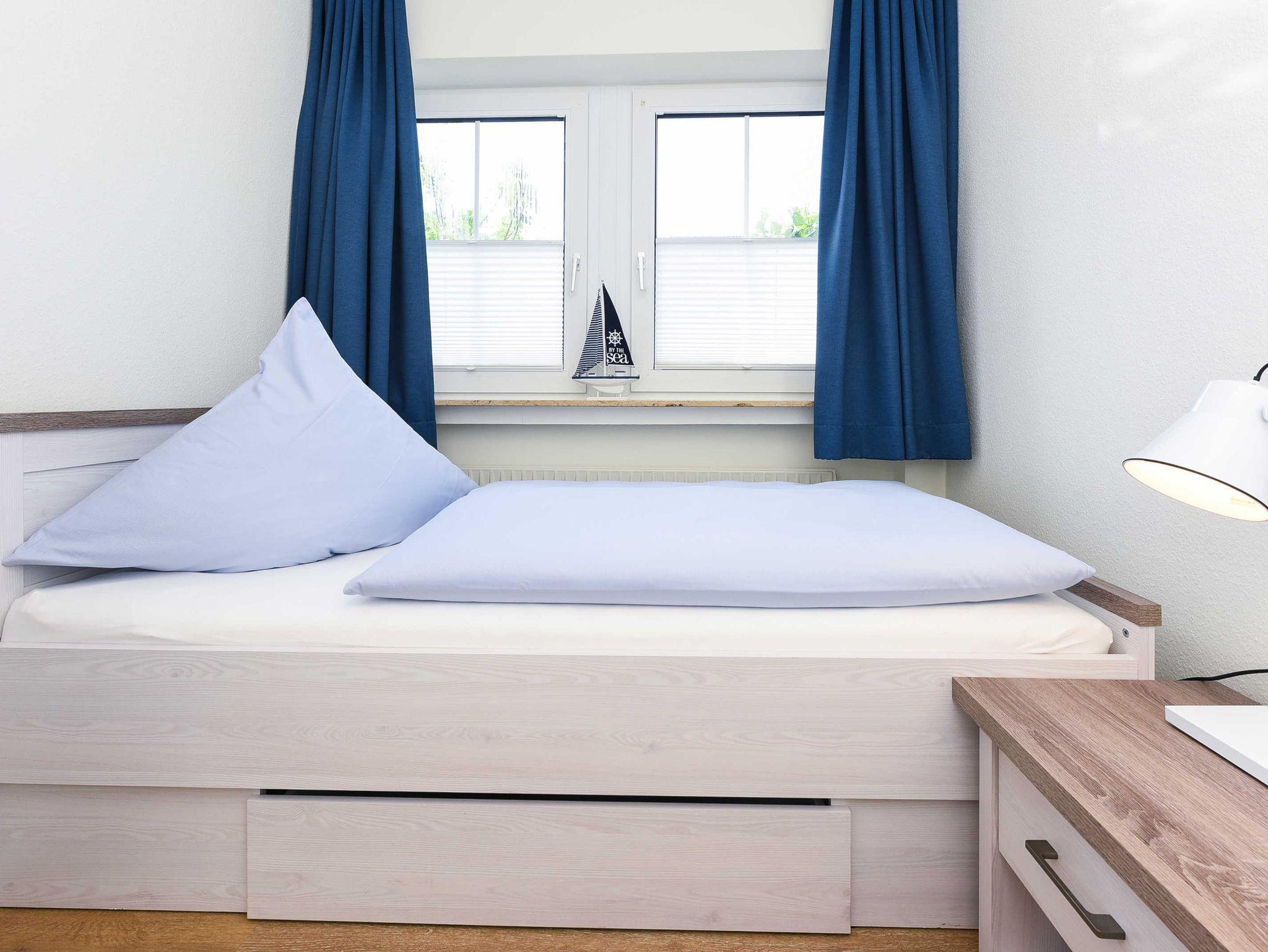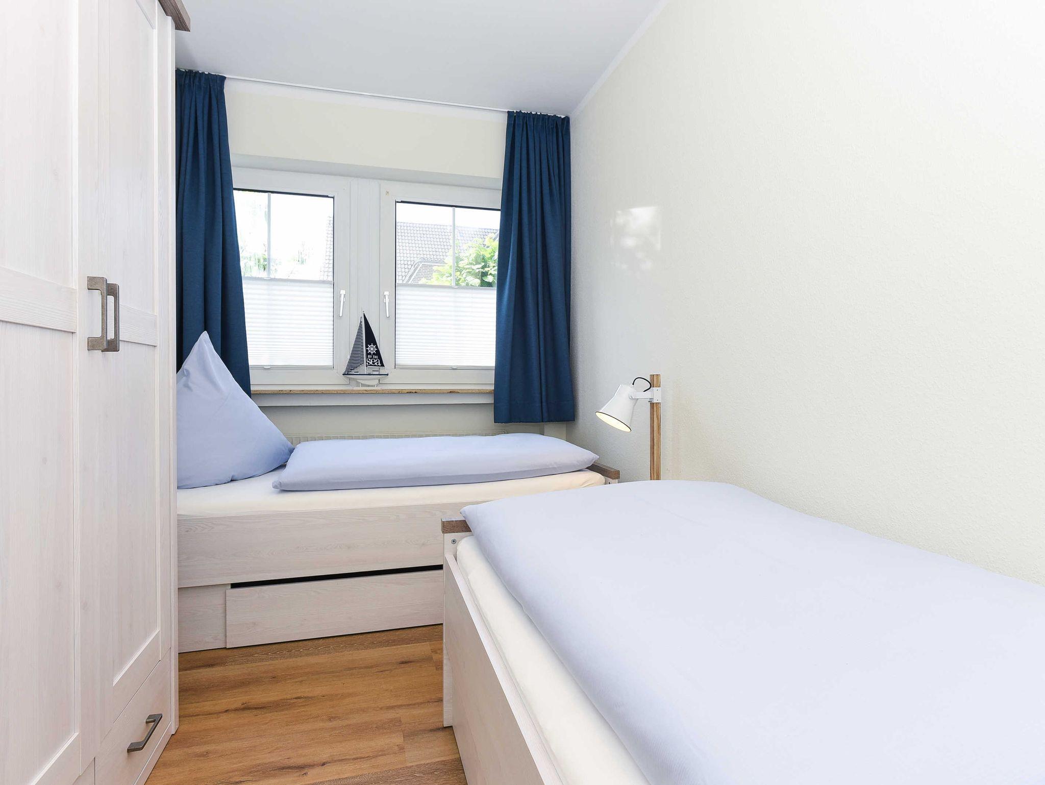 Die Schlafzimmer lassen sich mit Verdunkelungsgardinen abdunkeln.