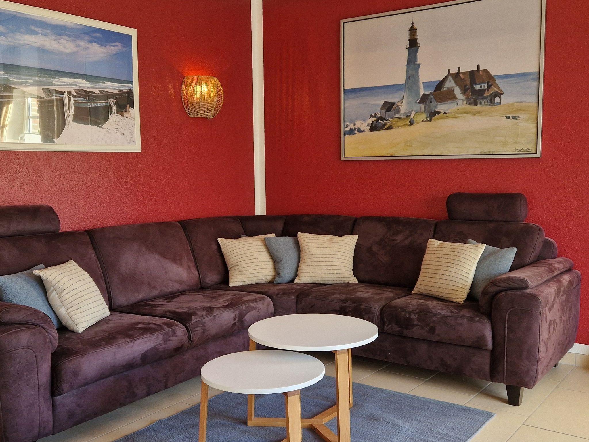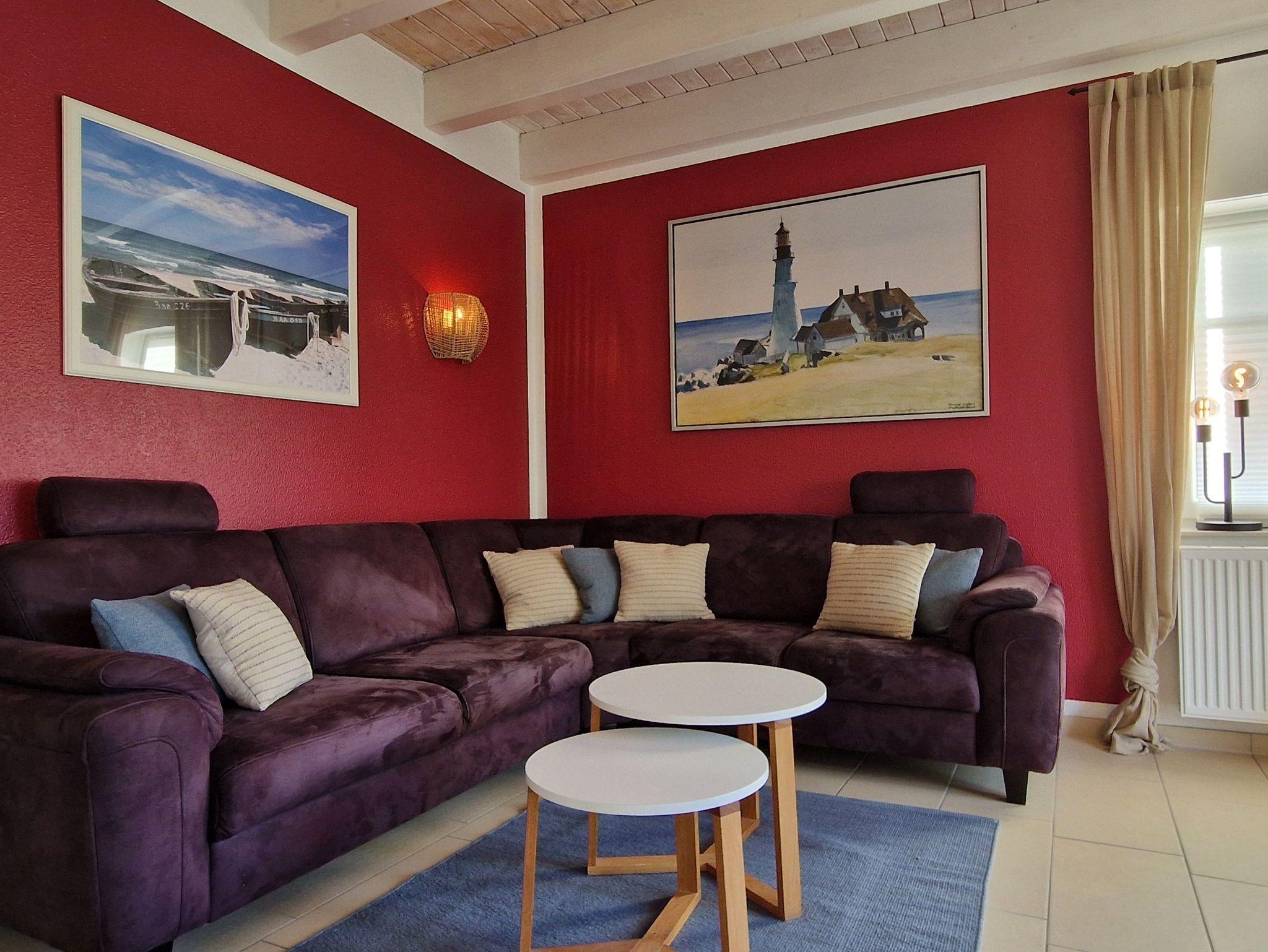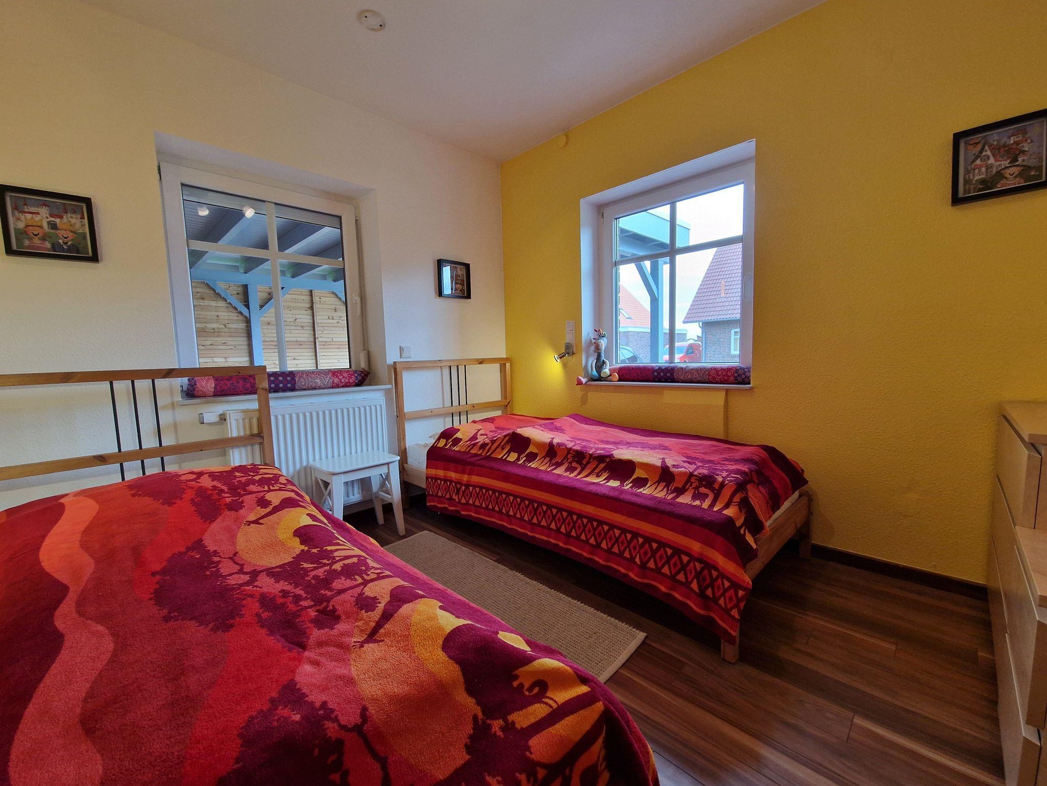 Die ca. 89m² große Ferienwohnung verfügt über einen großzügigen Wohn- und Essbereich mit moderner Küchenzeile. Von hier aus haben Sie ebenfalls Zugang zum Garten. Des weiteren finden Sie ein Schlafzimmer mit einem Doppelbett sowie ein Schlafzimmer mit zwei Einzelbetten. Ein geräumiges Badezimmer mit Badewanne, Dusche und WC rundet diese komfortable Wohnung ab. Die Böden sind mit Laminat und Fliesen, die Fenster mit Rolläden ausgestattet. WLAN steht Ihnen kostenlos zur Verfügung.