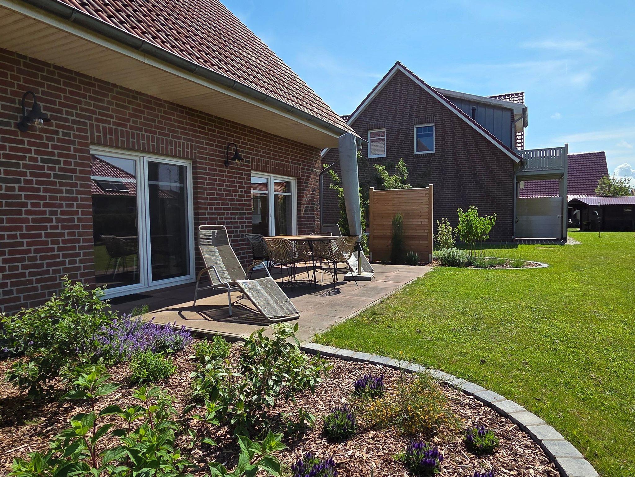 Die Ferienwohnung lädt mit einer möblierten Terrasse und dem großzügigen Garten zum Erholen ein.