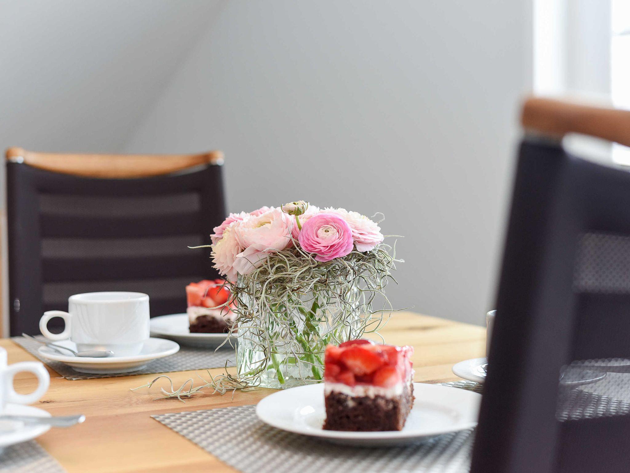 Ein kleiner, aber feiner zusätzlicher Clou: Unsere Bäckerei befindet sich unten im Haus und Sie bekommen die leckersten Brötchen und die besten Kuchen-Leckereien allmorgendlich absolut frisch auf den Tisch, wenn Sie möchten. Sie können auch auf der Bäckereiterrasse gleich Ihr ganzes Frühstück genießen.