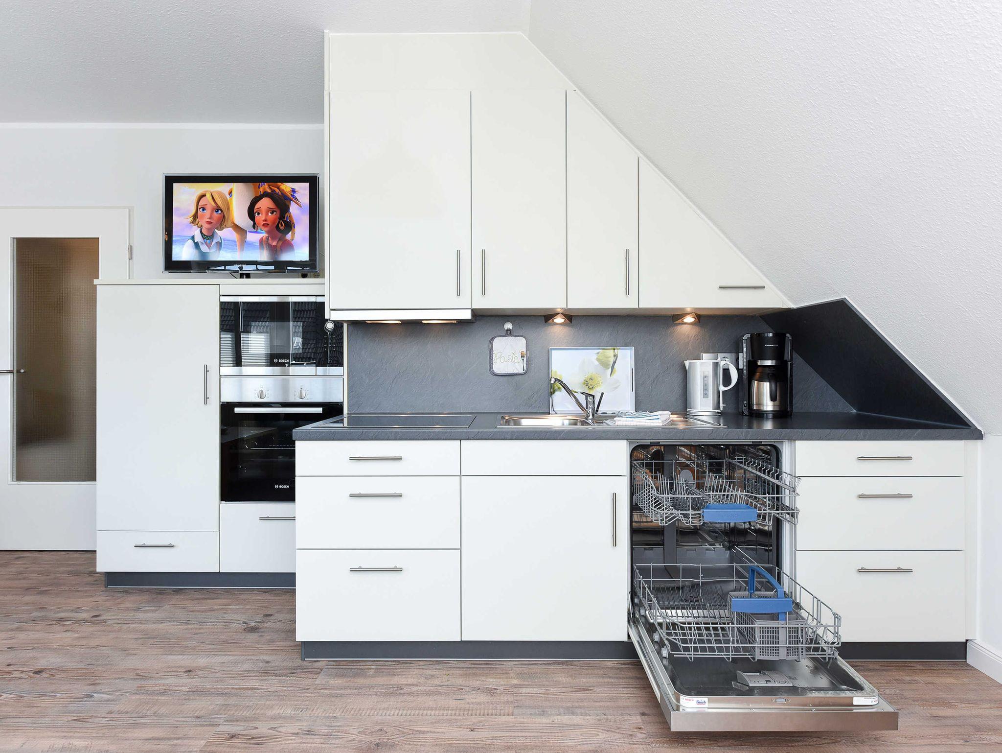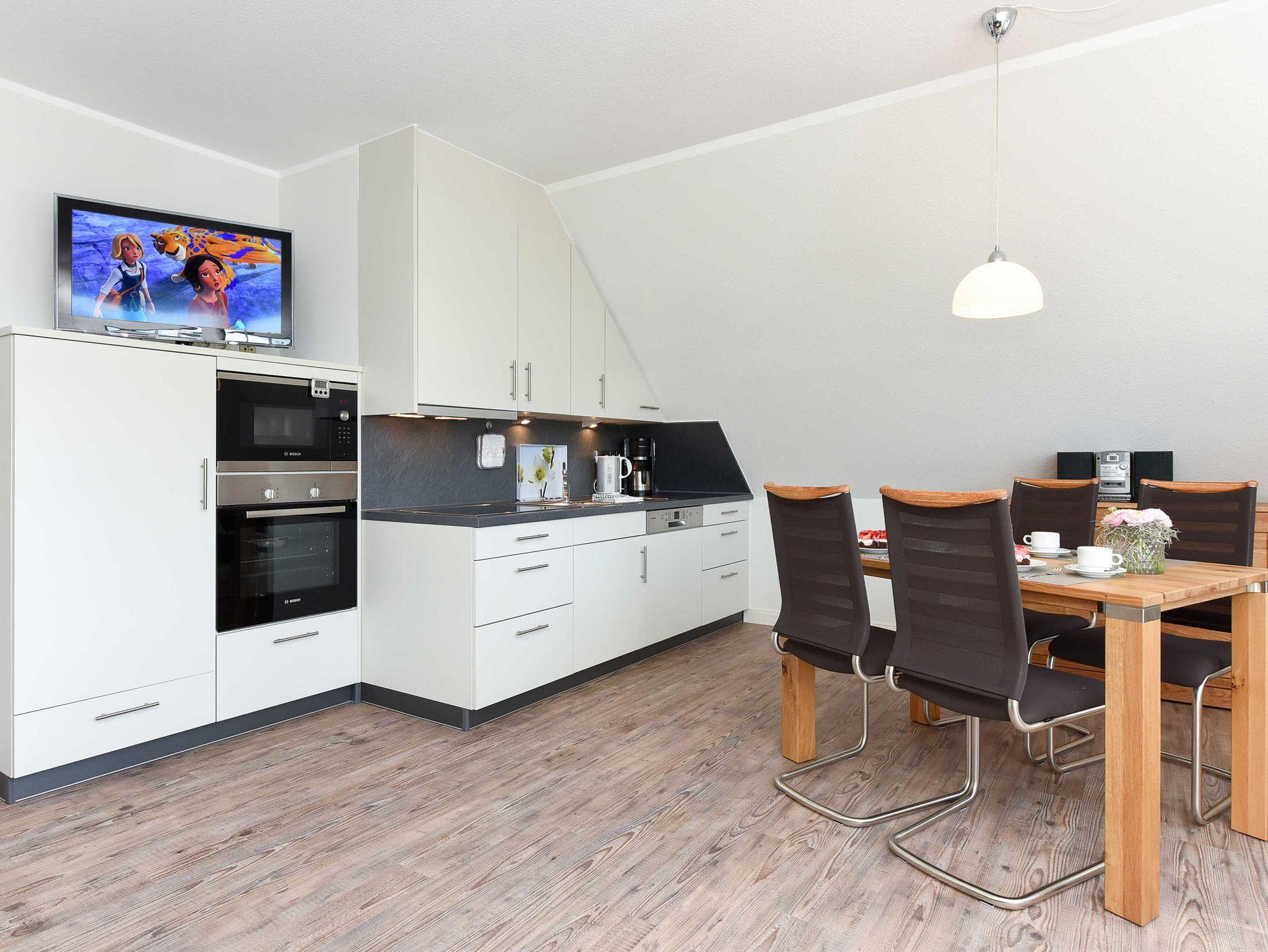 Alle Wohnungen sind speziell schallisolliert und verfügen über Geschirrspülmaschinen und Mikrowellen-Öfen, natürlich auch über voll ausgerüstete moderne Einbauküchen und alles, was man überhaupt im Urlaub benötigen könnte. Waschmaschine und Wäschetrockner stehen unseren Gästen zum Benutzen im Waschraum des Hauses zur Verfügung. In unseren Wohnungen liegen keine Teppichböden; damit möchten wir denjenigen Gästen entgegenkommen, die allergisch auf Staub und Tierhaare reagieren.