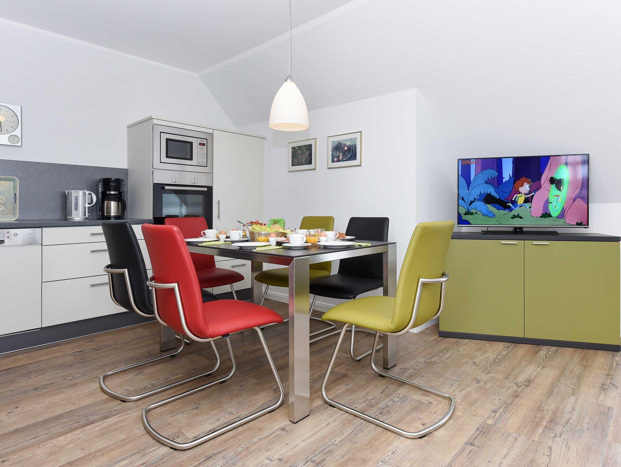 Alle Wohnungen sind speziell schallisolliert und verfügen über Geschirrspülmaschinen und Mikrowellen-Öfen, natürlich auch über voll ausgerüstete moderne Einbauküchen und alles, was man überhaupt im Urlaub benötigen könnte. Waschmaschine und Wäschetrockner stehen unseren Gästen zum Benutzen im Waschraum des Hauses zur Verfügung. In unseren Wohnungen liegen keine Teppichböden; damit möchten wir denjenigen Gästen entgegenkommen, die allergisch auf Staub und Tierhaare reagieren.