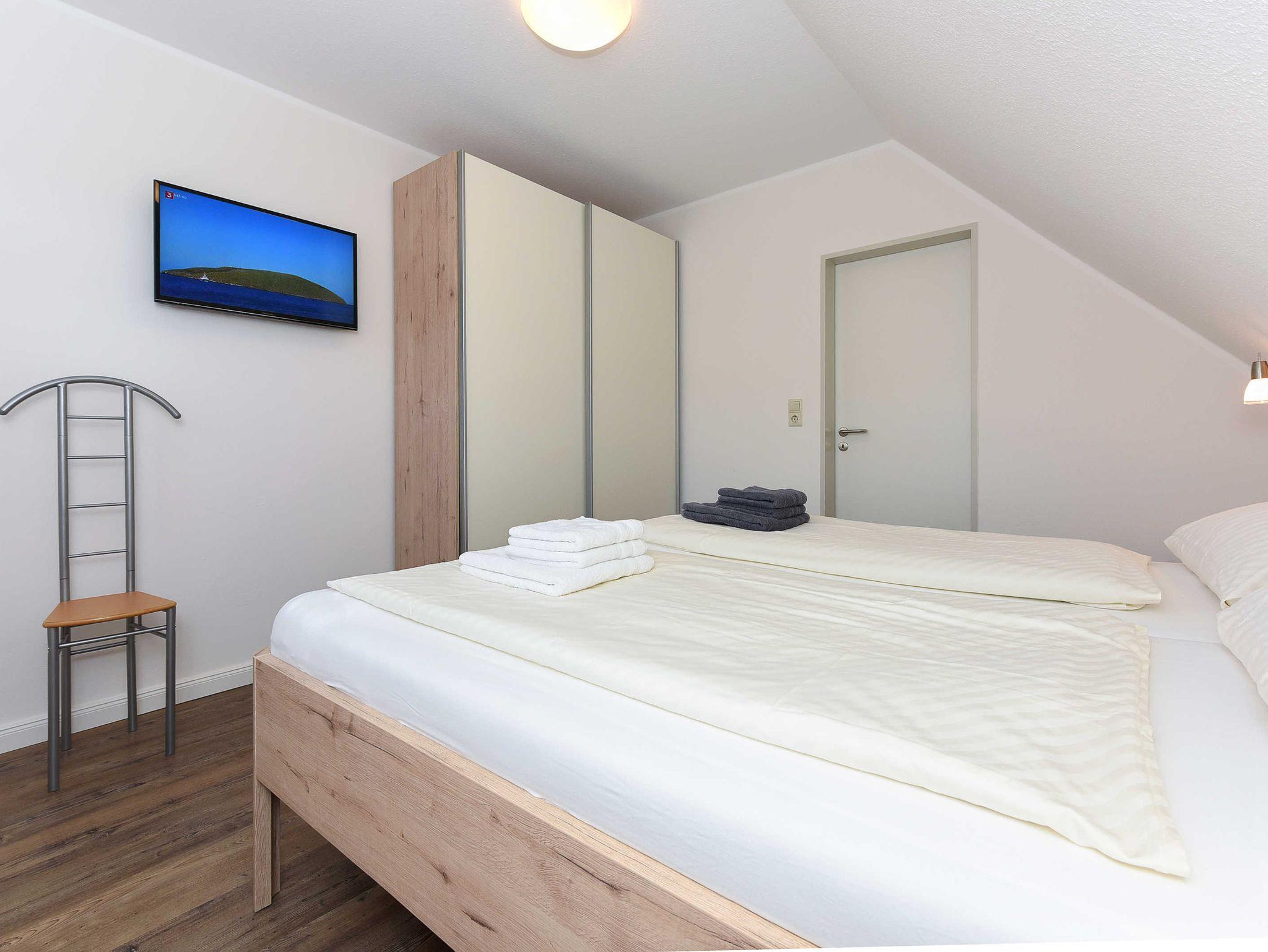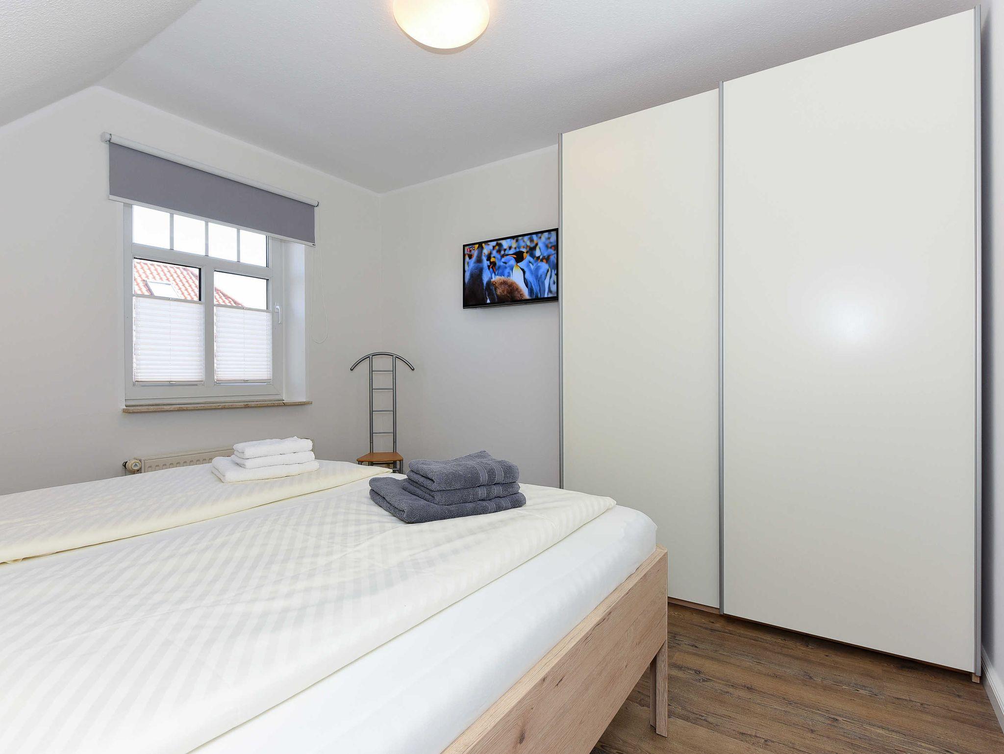 drittes separates Schlafzimmer, Badezimmer mit Dusche, Waschtisch und WC, Obergeschoss, Balkon, optimal für 2 bis 6 Personen und zusätzlich ein Kleinkind.