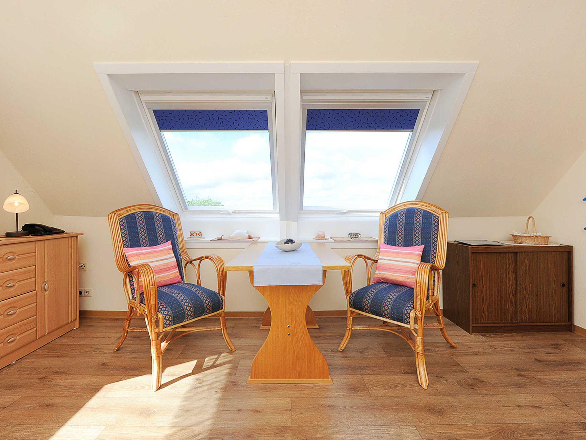 Obergeschoss, optimal für 1 bis 2 Personen. Das Apartment Traumblick 2 ist eine Wohn- Schlafkombination und befindet sich in der 2. Etage.