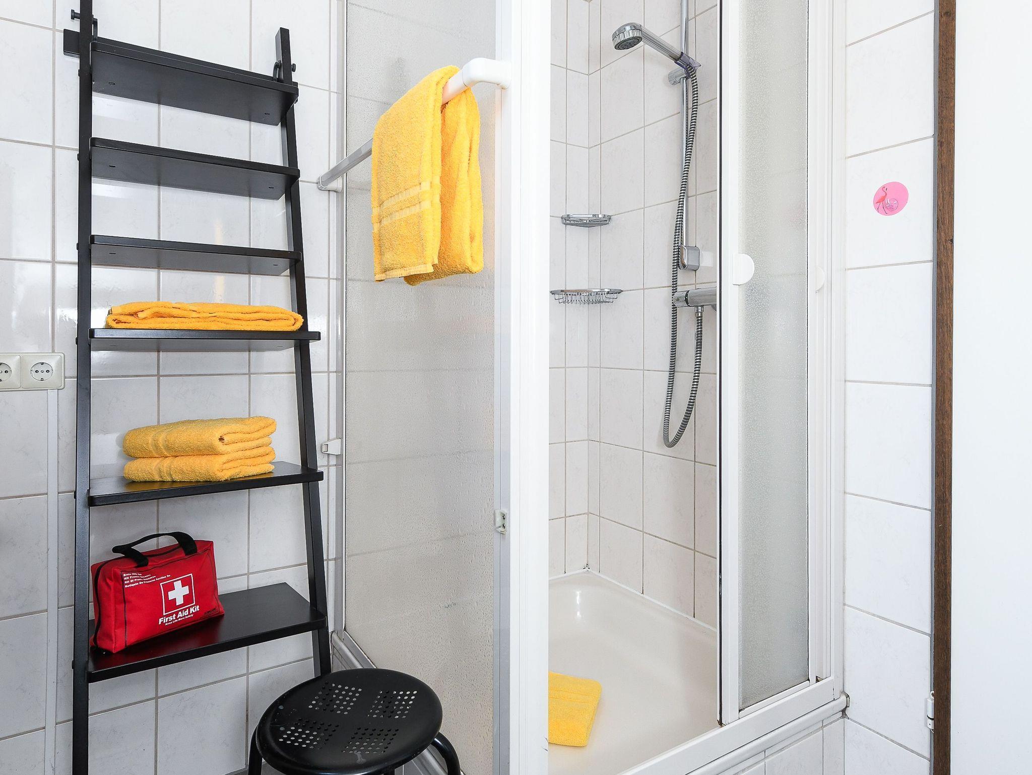 Badezimmer mit Dusche, Waschtisch und WC