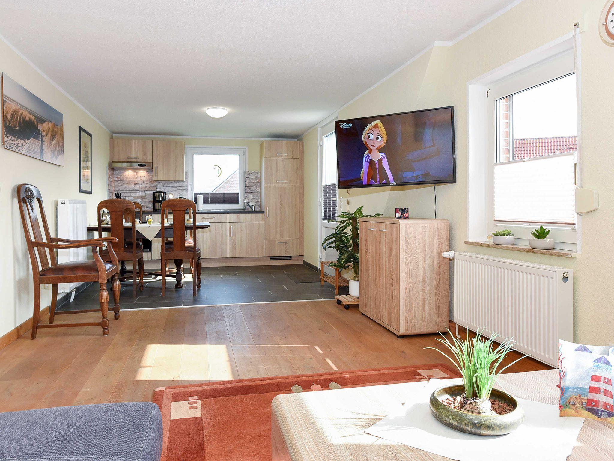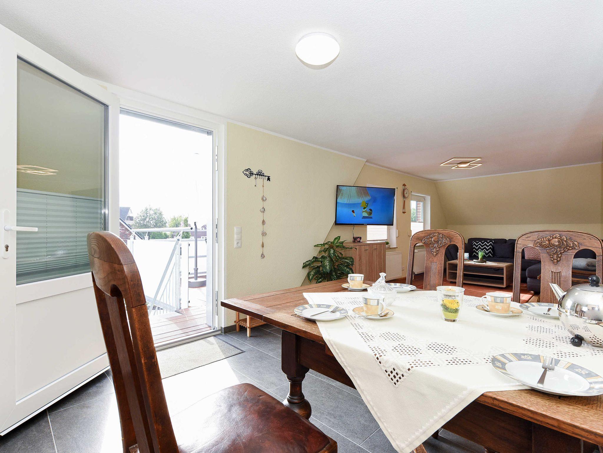 Gemütliche Ferienwohnung Teezeit in Neuharlingersiel mit Dachterrasse und WLAN, ideal für Familien und Naturfreunde.