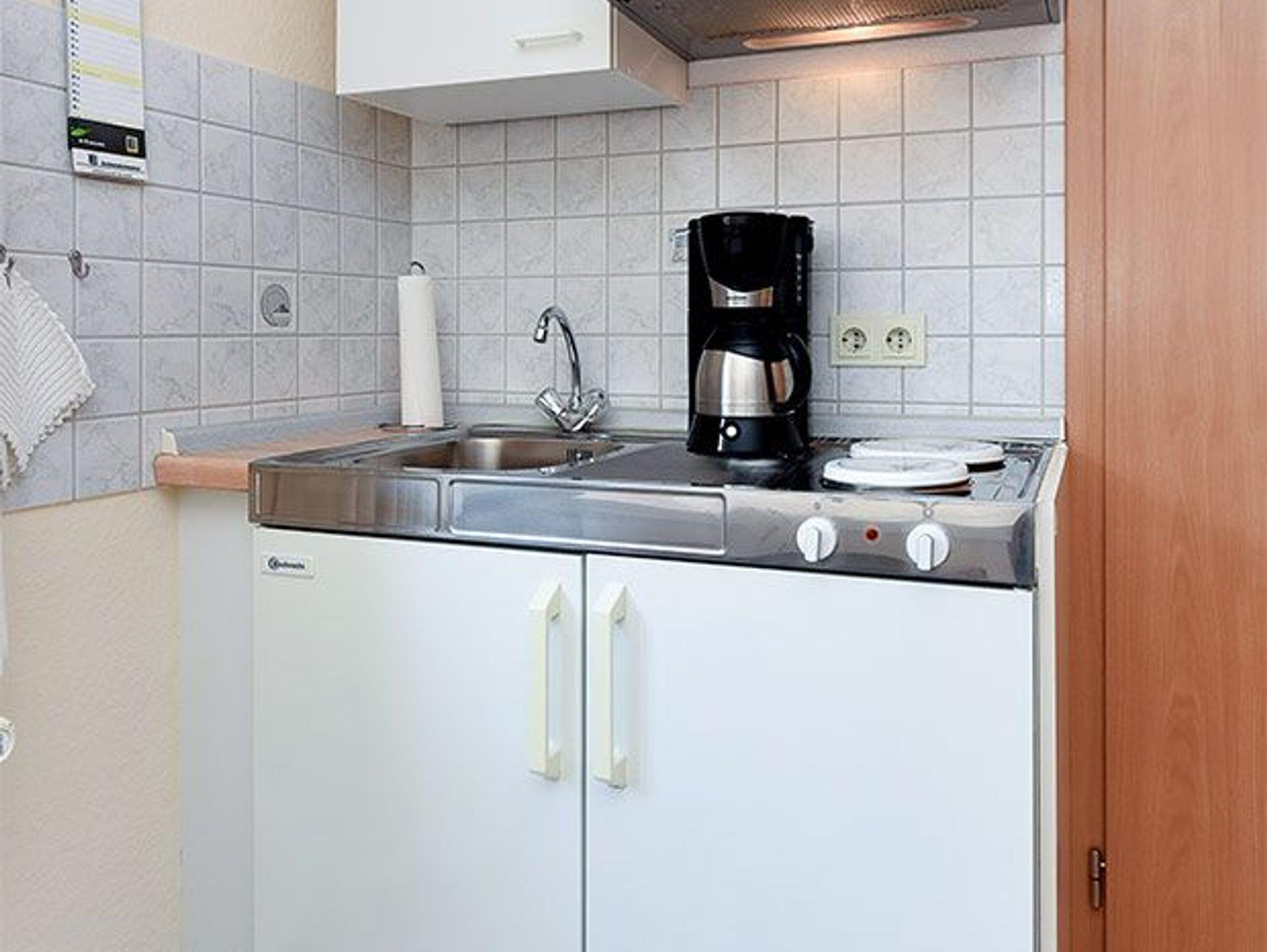 Größe ca.36 Quadratmeter, Wohnraum mit integrierter Küche, Schlafzimmer, Badezimmer mit Dusche, Waschtisch und WC, Erdgeschoss, Terrasse, optimal für 1 bis 2 Personen.