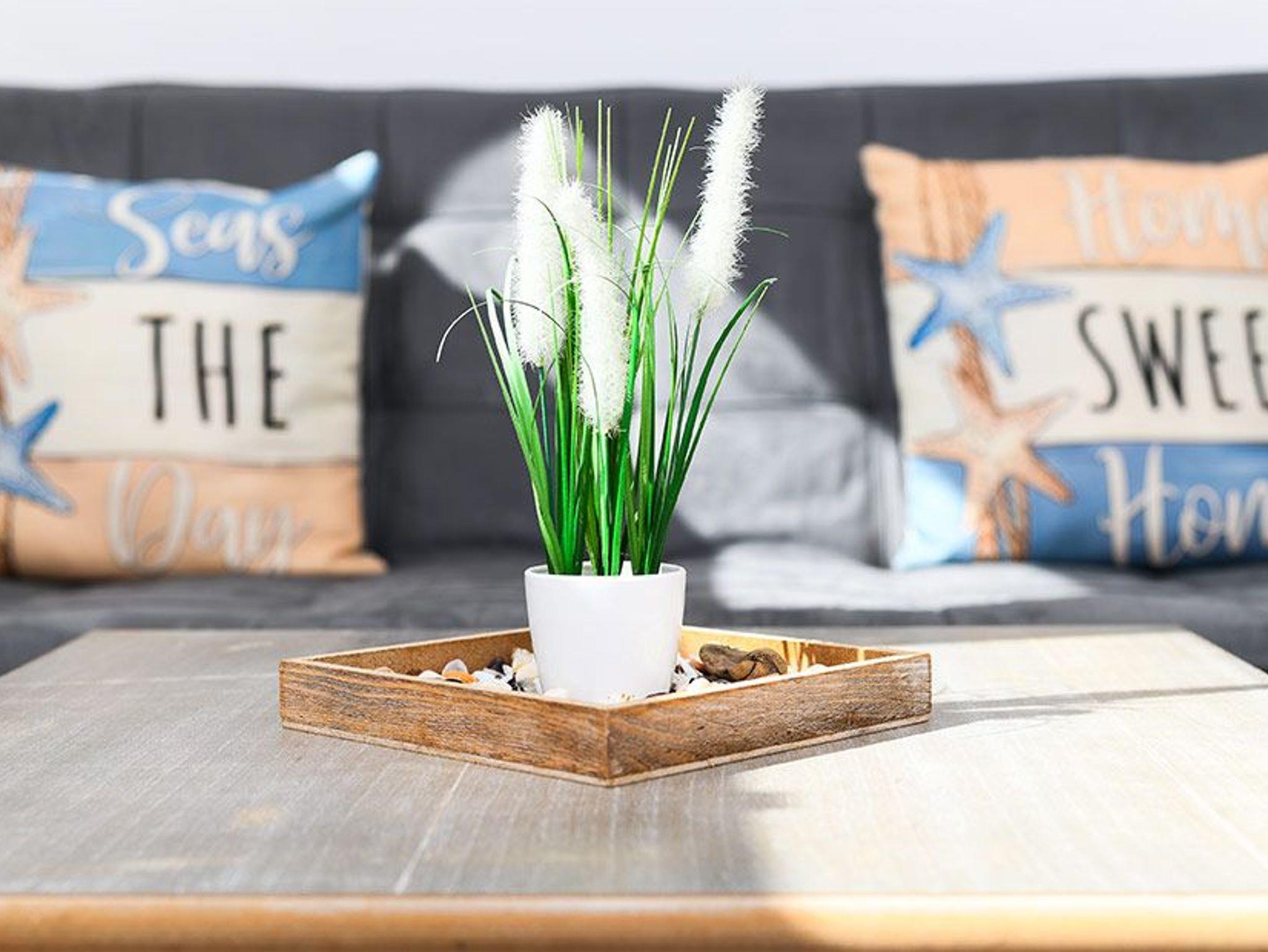Größe ca. 43 Quadratmeter, Wohnraum mit integrierter Küche, Schlafzimmer, zweites separates Schlafzimmer/Kinderzimmer, Badezimmer mit Dusche, Waschtisch und WC, Obergeschoss, optimal für 1 bis 6 Personen und zusätzlich ein Kleinkind.