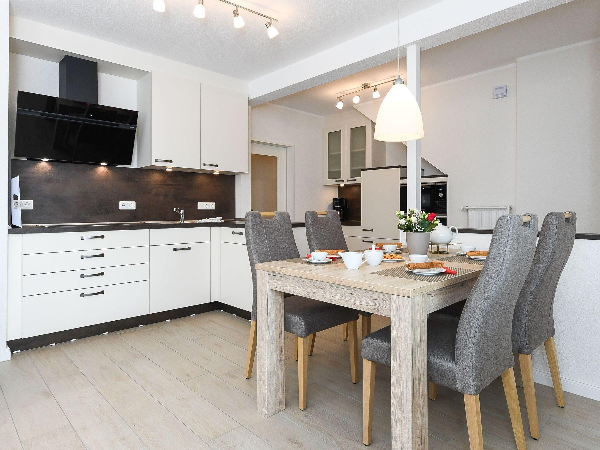 Alle vier Wohnungen haben entweder eine Terrasse oder einen Balkon. Ein Garten steht Ihnen ebenfalls zur Verfügung. Natürlich gibt es in allen Wohnungen voll ausgerüstete moderne Einbauküchen und alles, was man überhaupt im Urlaub benötigen könnte. Jede Wohnung verfügt über eine Mikrowelle, Geschirrspüler sind vorhanden und Waschmaschine sowie Wäschetrockner stehen für Sie in unserem separaten Waschhaus im Bootsweg 12, „Haus Pamir“, zur Verfügung.