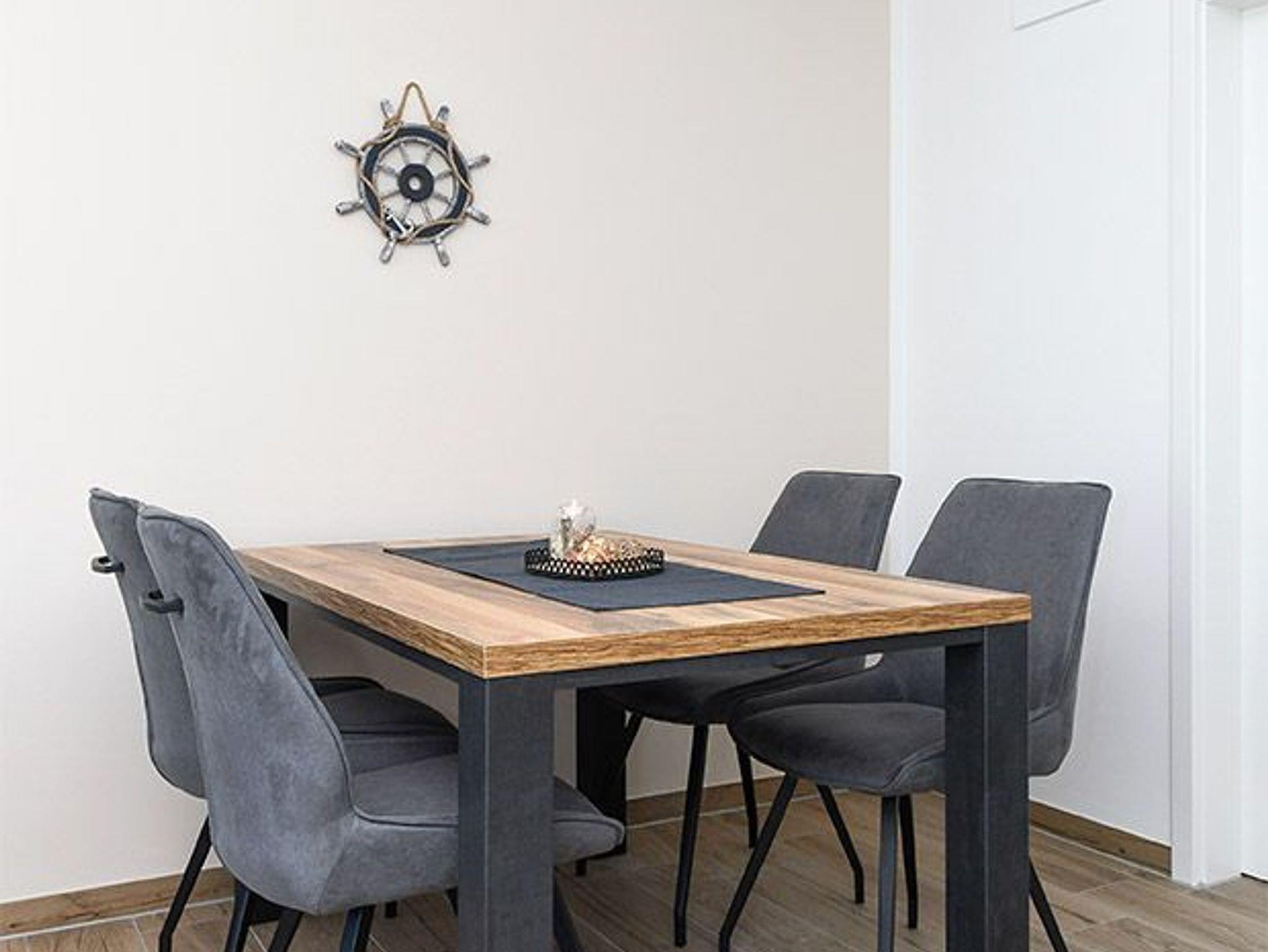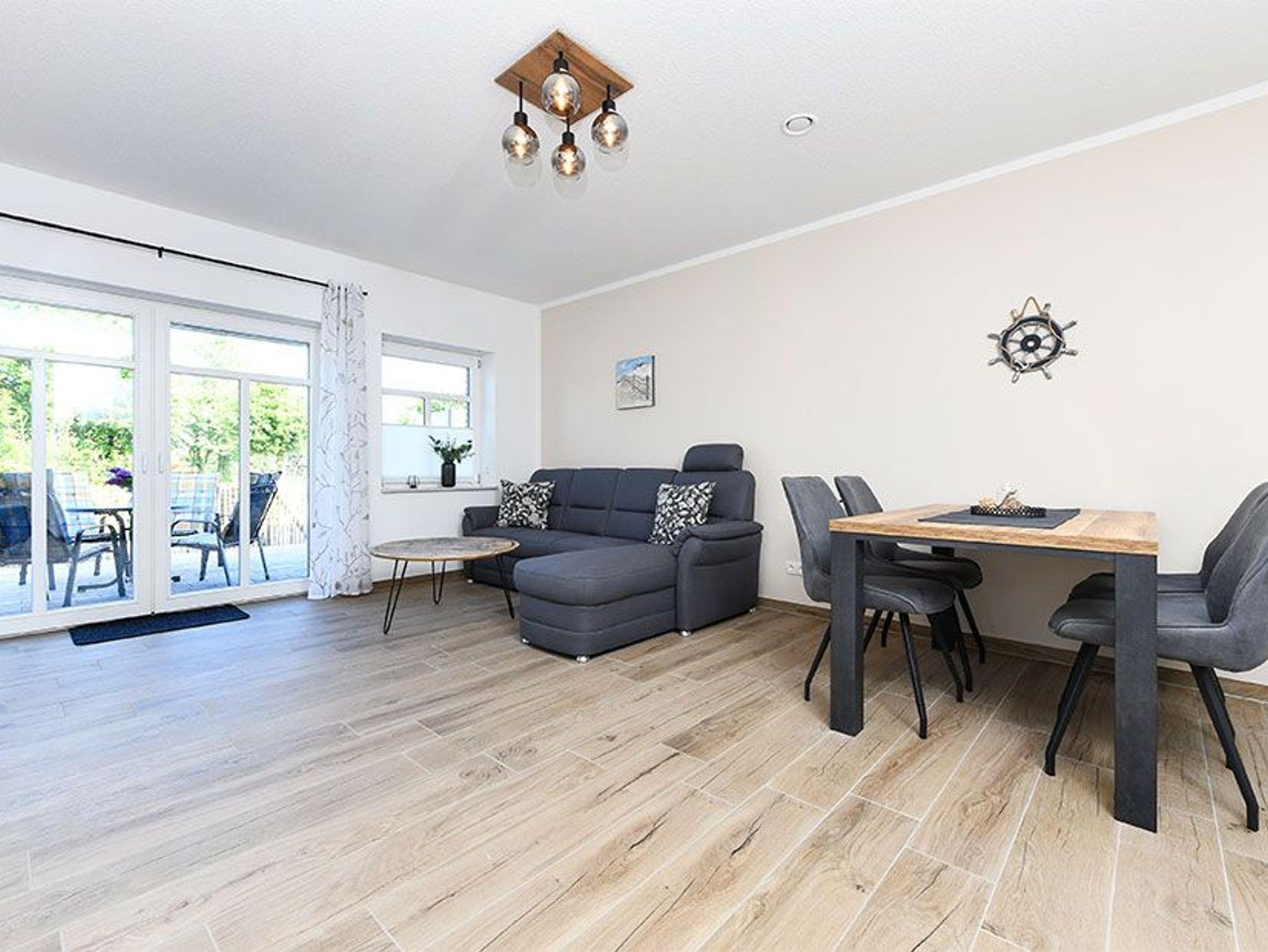 Größe ca. 60 Quadratmeter, Wohnraum mit integrierter Küche, Schlafzimmer, zweites separates Schlafzimmer/Kinderzimmer, Badezimmer mit Badewanne, Dusche, Waschtisch und WC, Erdgeschoss, Terrasse, optimal für 2 bis 4 Personen.