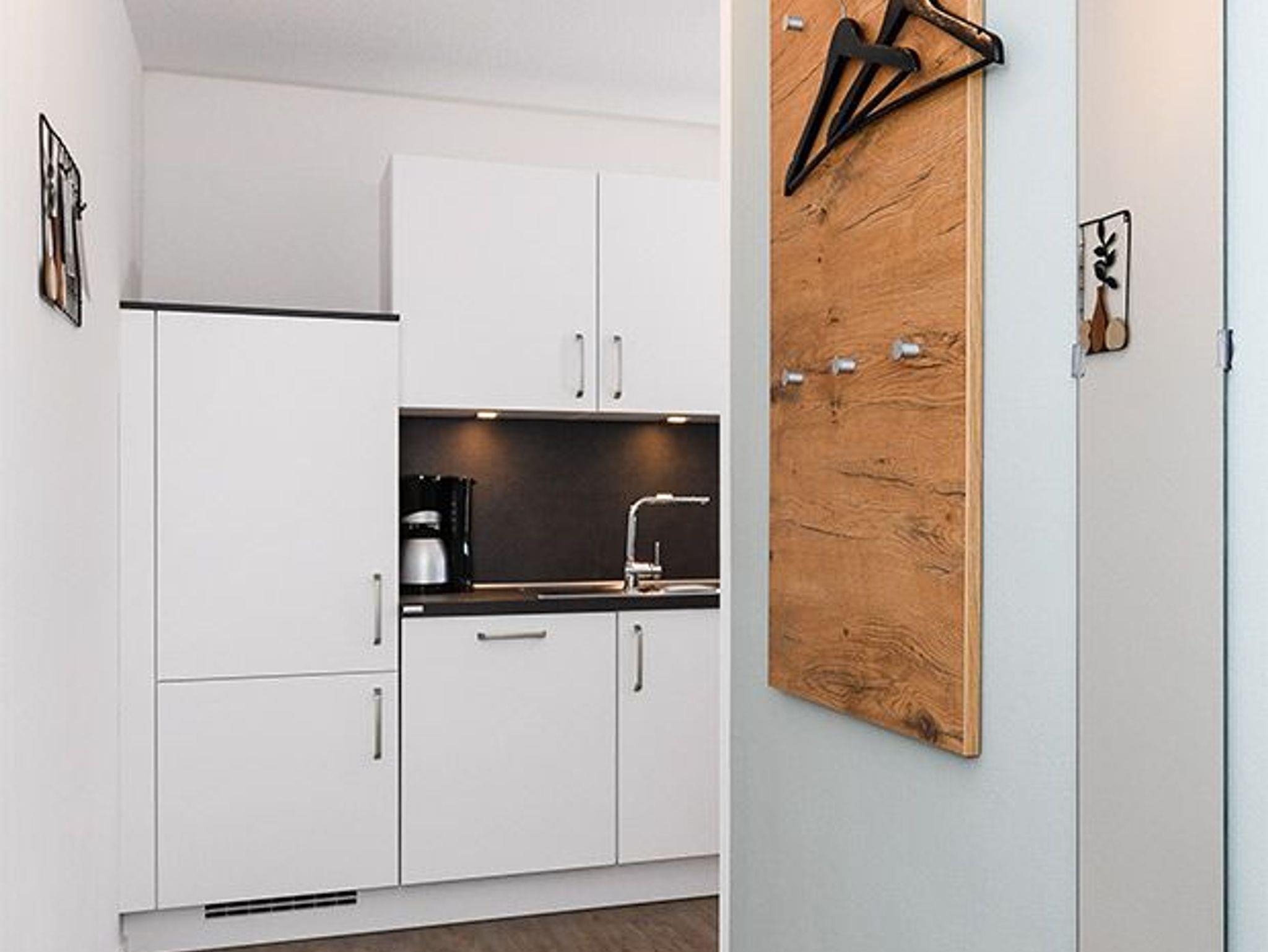 Größe ca. 64 Quadratmeter. Wohnraum mit integrierter Küche. Schlafzimmer, zweites separates Schlafzimmer/Kinderzimmer, Badezimmer mit Dusche, Waschtisch und WC, Obergeschoss, optimal für 2 bis 4 Personen.