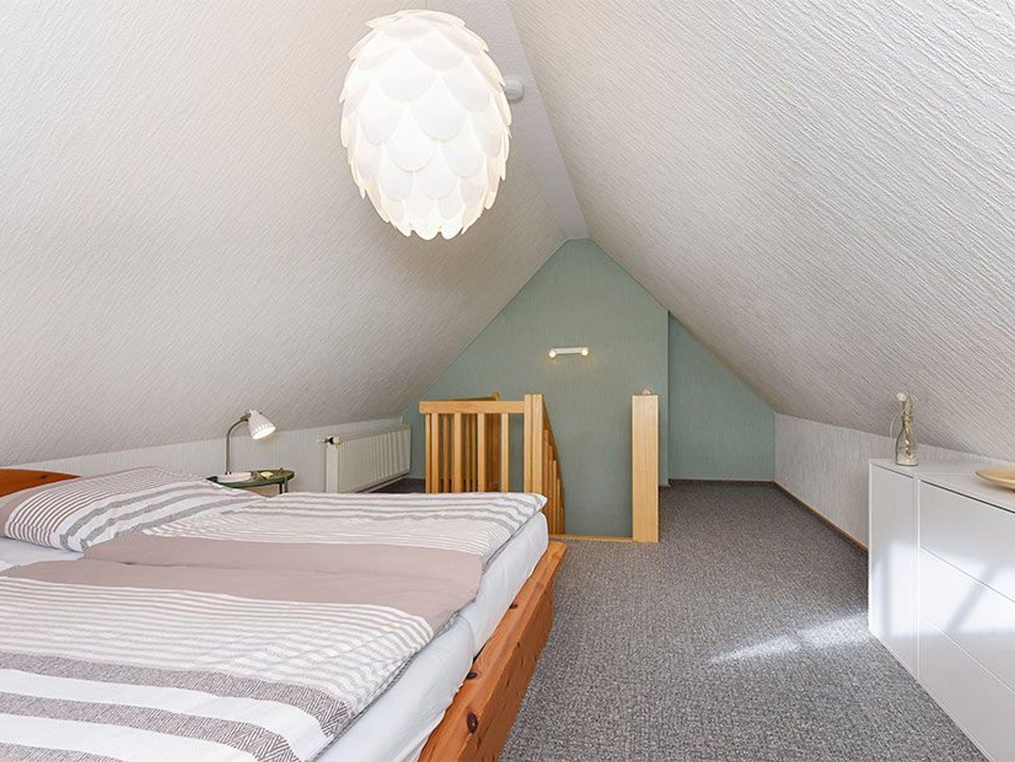 Größe ca. 45 Quadratmeter, Wohnraum mit integrierter Küche, Schlafzimmer, Badezimmer mit Dusche, Waschtisch und, WC, Obergeschoss, optimal für 1 bis 2 Personen.