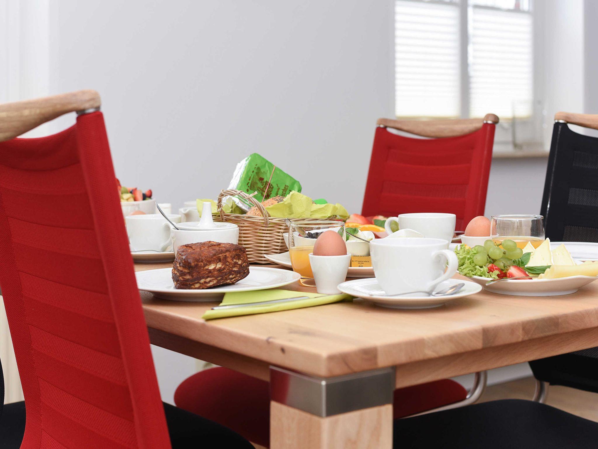 Ein kleiner, aber feiner zusätzlicher Clou: Unsere Bäckerei befindet sich unten im Haus und Sie bekommen die leckersten Brötchen und die besten Kuchen-Leckereien allmorgendlich absolut frisch auf den Tisch, wenn Sie möchten. Sie können auch auf der Bäckereiterrasse gleich Ihr ganzes Frühstück genießen.
