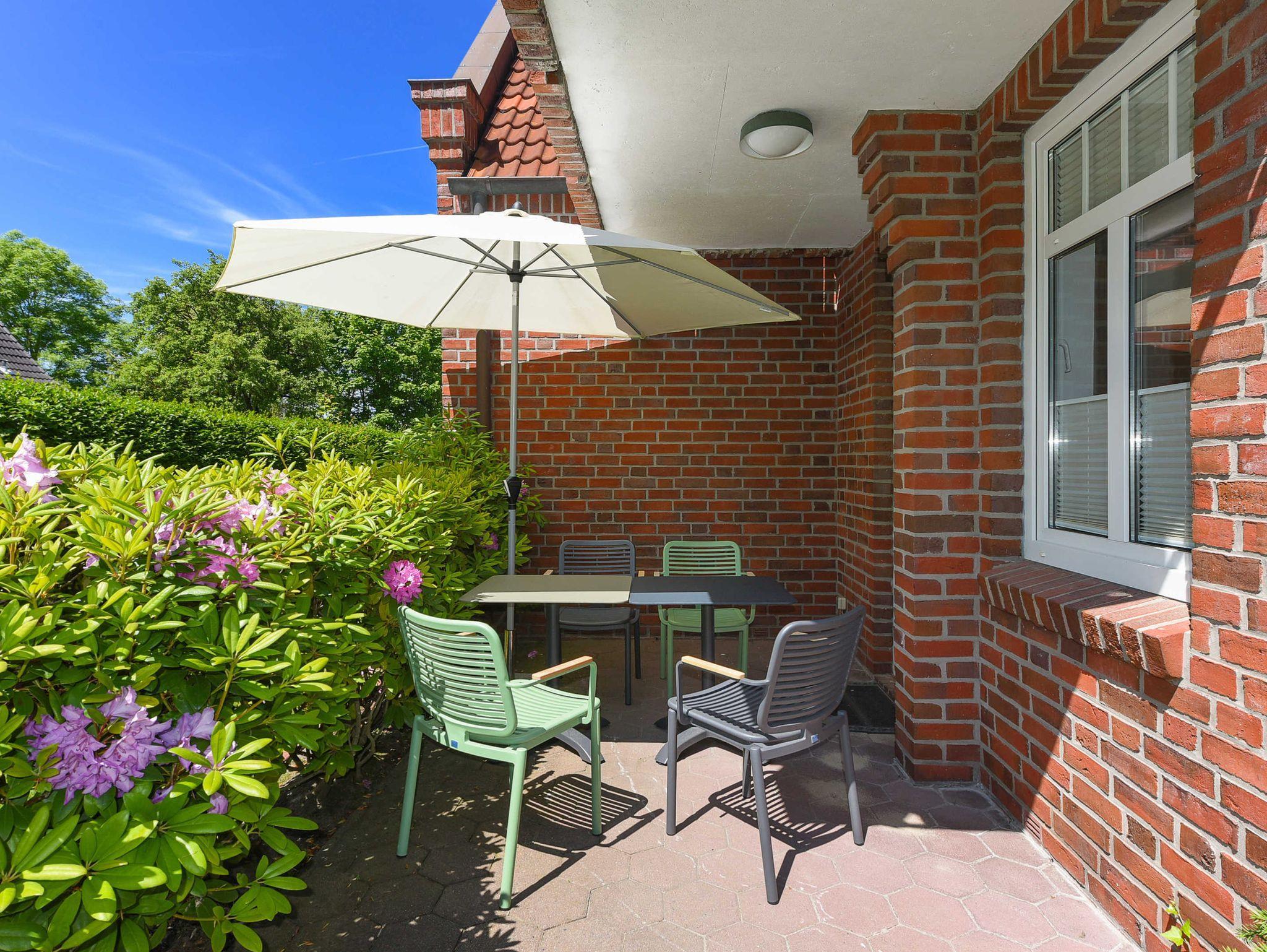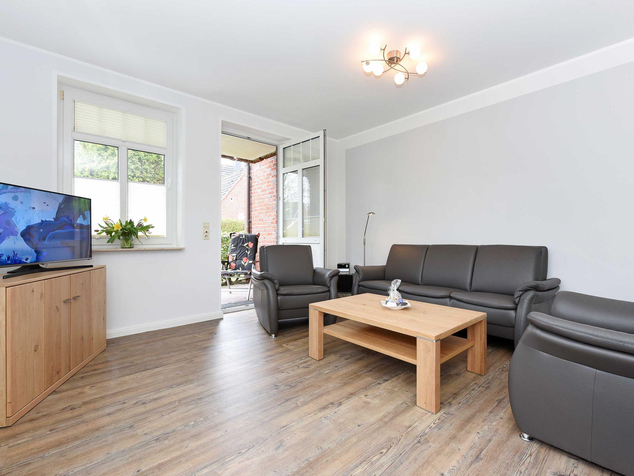 Gemütliche Ferienwohnung im Haus Addenhausen in Neuharlingersiel, nah am Deich und Strand, mit Terrasse und moderner Ausstattung.