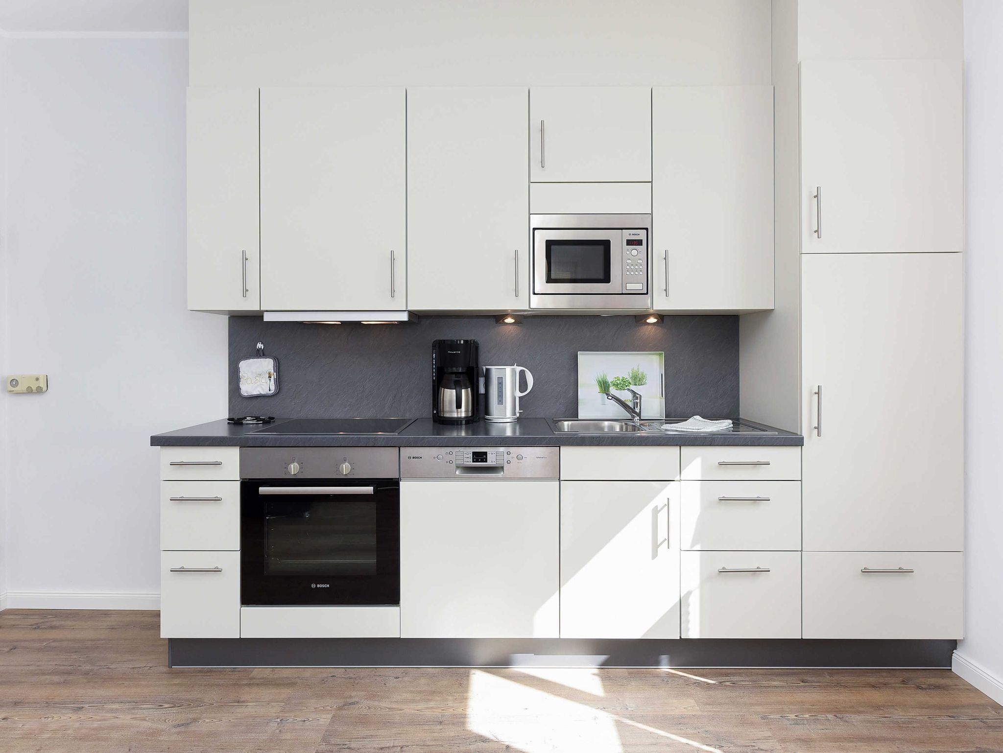 Alle Wohnungen sind speziell schallisolliert und verfügen über Geschirrspülmaschinen und Mikrowellen-Öfen, natürlich auch über voll ausgerüstete moderne Einbauküchen und alles, was man überhaupt im Urlaub benötigen könnte. Waschmaschine und Wäschetrockner stehen unseren Gästen zum Benutzen im Waschraum des Hauses zur Verfügung. In unseren Wohnungen liegen keine Teppichböden; damit möchten wir denjenigen Gästen entgegenkommen, die allergisch auf Staub und Tierhaare reagieren.