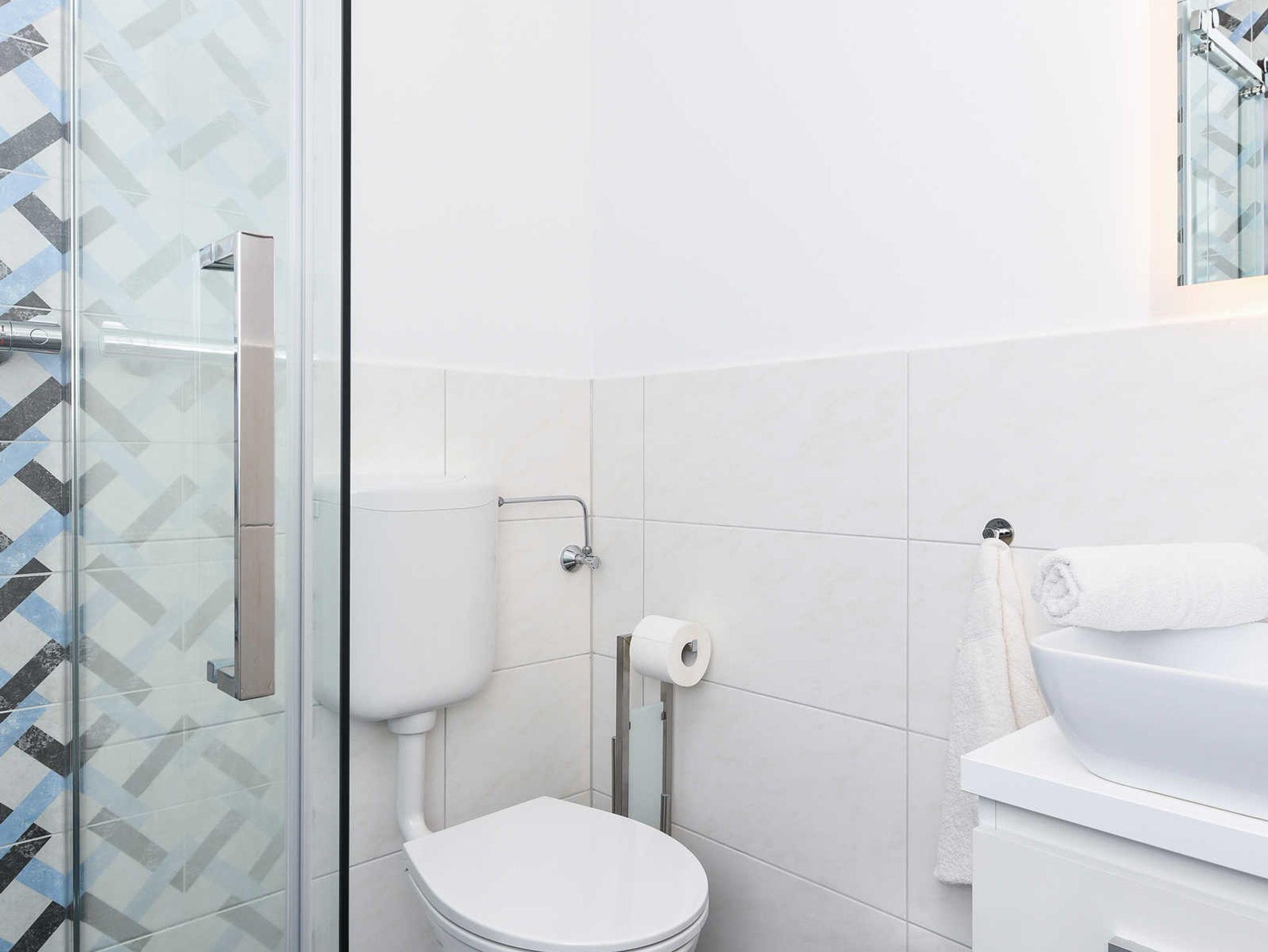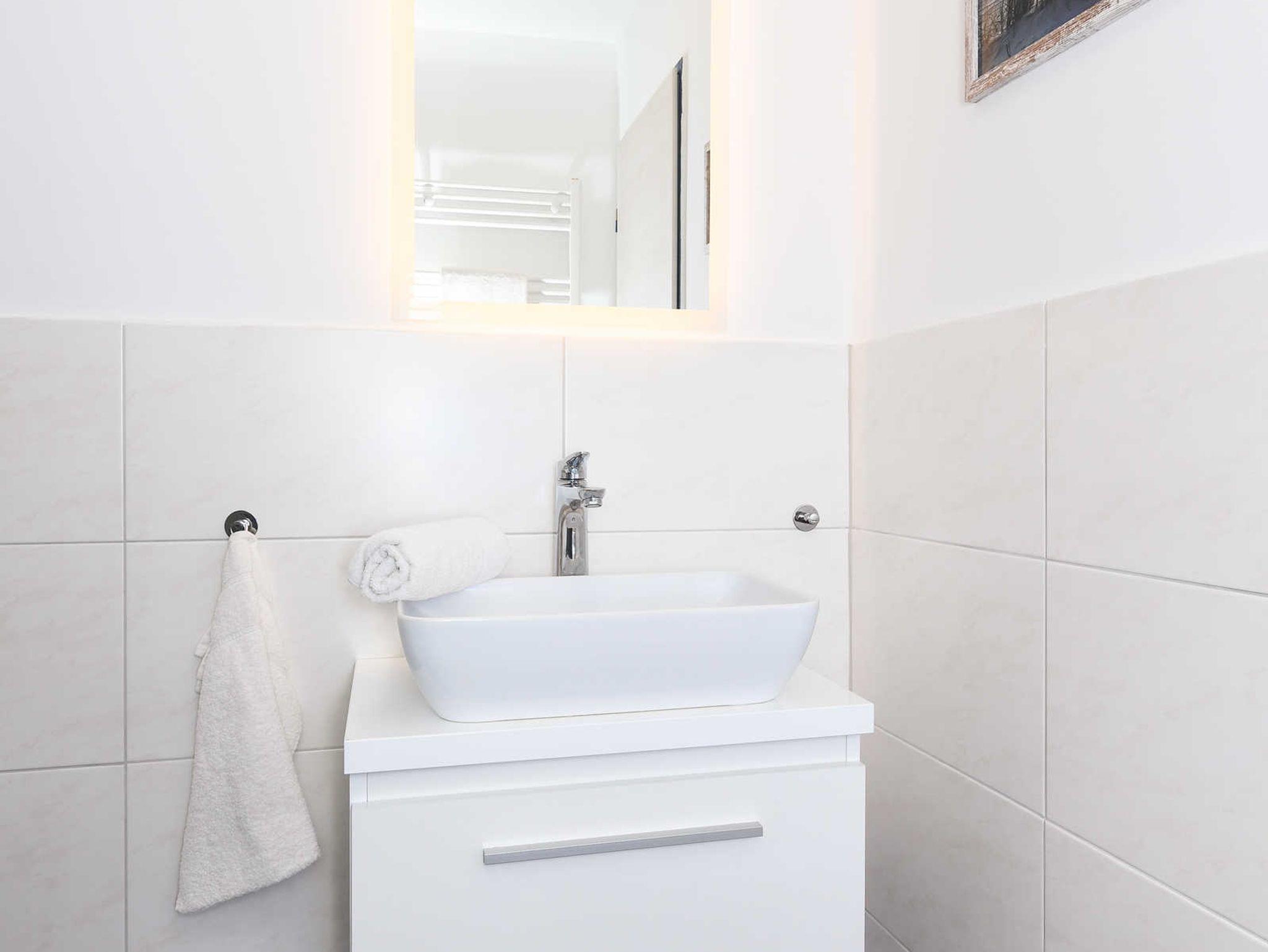 In fünf der sechs Wohnungen genießen Sie schon morgens Ihr Urlaubsfrühstück auf der Terrasse oder auf dem Balkon. Hinter dem Haus befindet sich der Garten mit einer Liegewiese. Im Haus gibt es einen Waschraum mit Waschmaschine zu Ihrer Verfügung.