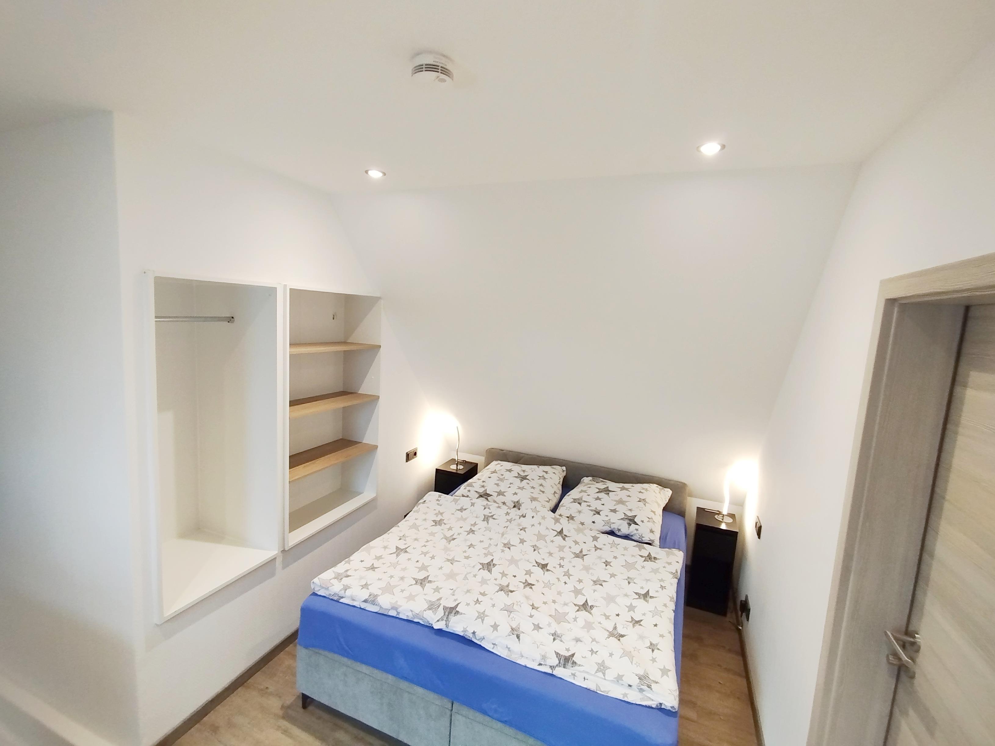Die Wohnung ist wie folgt aufgeteilt. Wohnraum mit Küchenzeile (Toaster, Wasserkocher, Filter Kaffeemaschine, Kühlschrank mit Eisfach), Sitzgelegenheiten und einem Sofa mit Schlaffunktion, Badezimmer mit Dusche/WC und ein separater Schlafraum mit einem 180*200 Boxspringbett. Über eine Treppe erreichen Sie ein weiteren gemütlichen, offenen Raum der eine weitere Schlafmöglichkeit 160*200 für 2 Personen bietet und mit seinem besonderen Charme vor allem bei Kindern und Junggebliebenen beliebt ist..