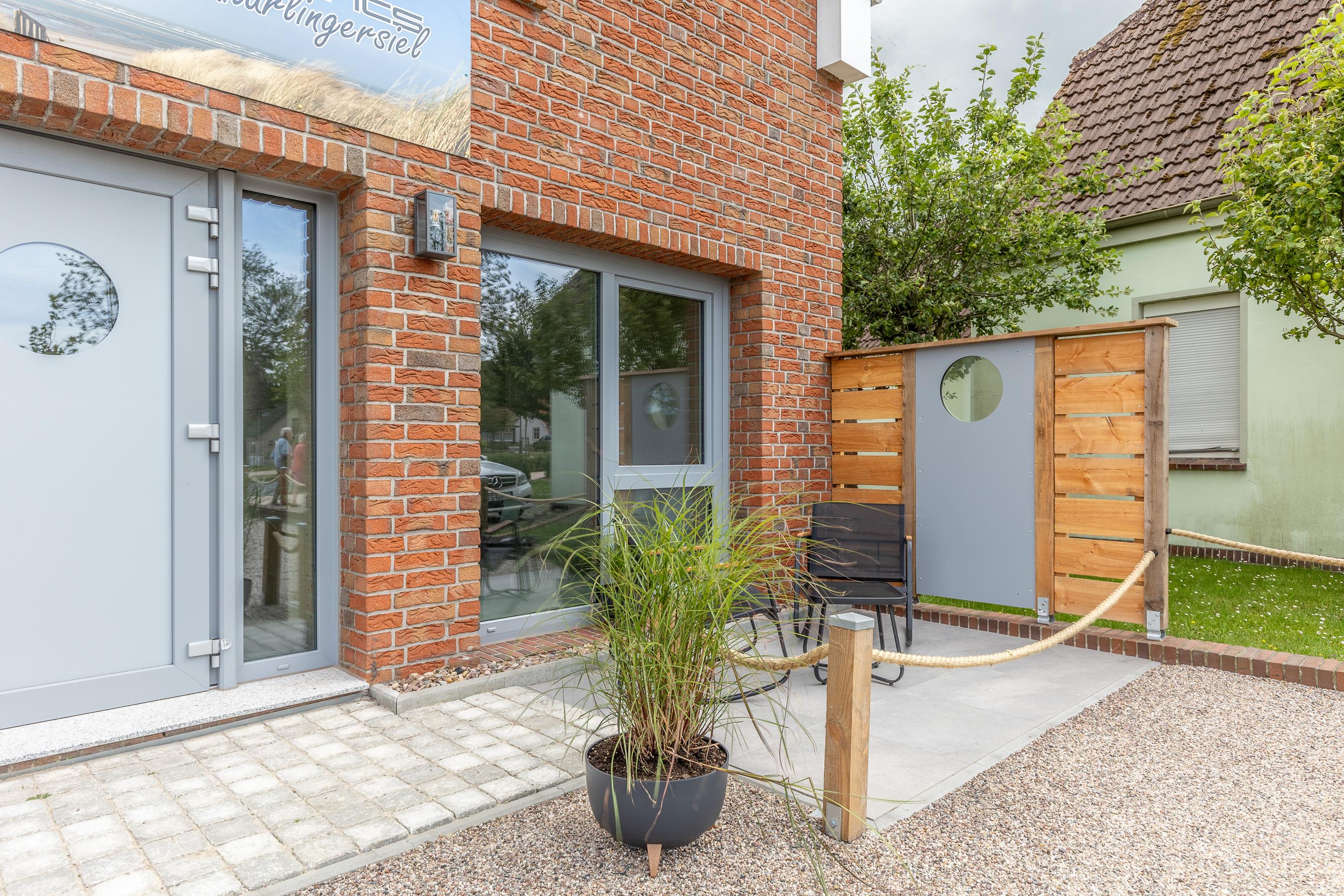 Ein besonderes Extra: Direkt am Haus befindet sich eine gemeinschaftlich nutzbare Terrasse. Hier genießen Sie die frische Nordseeluft, lassen den Blick in die Weite schweifen und erleben das besondere Küstenflair - ob bei einer Tasse Kaffee am Morgen oder einem Glas Wein am Abend. Die Terrasse lädt zum Verweilen, Entspannen und zum lockeren Austausch mit anderen Gästen ein.