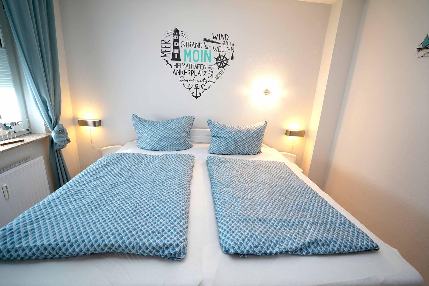 Die Ferienwohnung Baltrum überzeugt nicht nur durch ihre perfekte Lage, sondern auch durch ihre liebevolle, maritime Einrichtung. Direkt im Erdgeschoss gelegen, bietet die Wohnung alles, was Sie für einen komfortablen Aufenthalt benötigen. Zwei gemütliche Schlafzimmer mit jeweils einem Doppelbett versprechen erholsamen Schlaf. Die großzügige, voll ausgestattete Küche lässt keine Wünsche offen – hier können Sie gemeinsam kochen und bei einem gemütlichen Abendessen am großen Esstisch die Seele baumeln lassen.