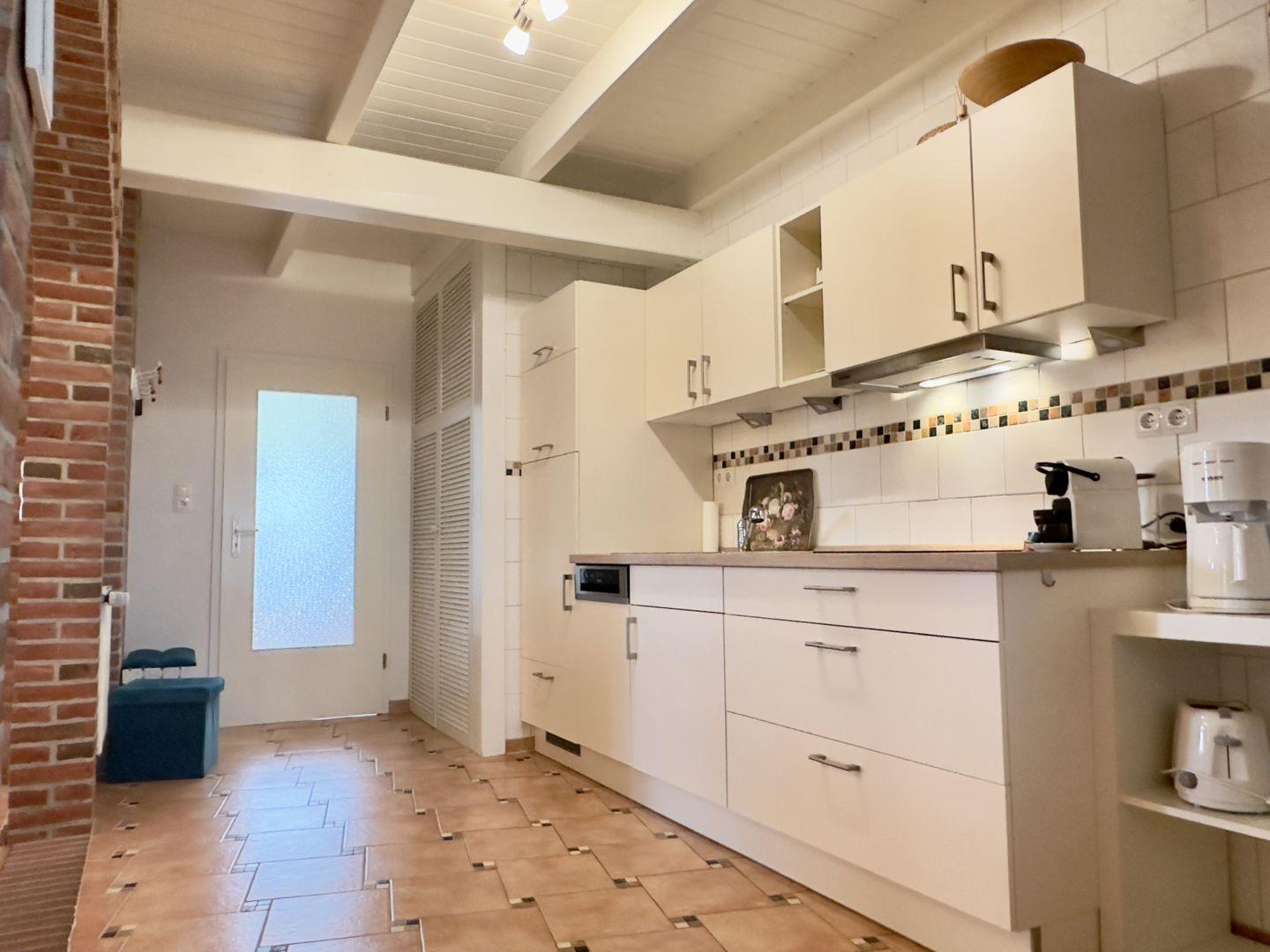 Der wunderschöne, verklinkerte Rundbogen führt Sie in die vollständig ausgestattete Küche, die alles bietet, was Sie für Ihre Selbstversorgung benötigen. Besonders hervorzuheben ist die Nespresso-Maschine, die Ihnen die Gelegenheit gibt, sich mit einem frisch gebrühten Kaffee und einem leckeren Stück Kuchen zu verwöhnen.