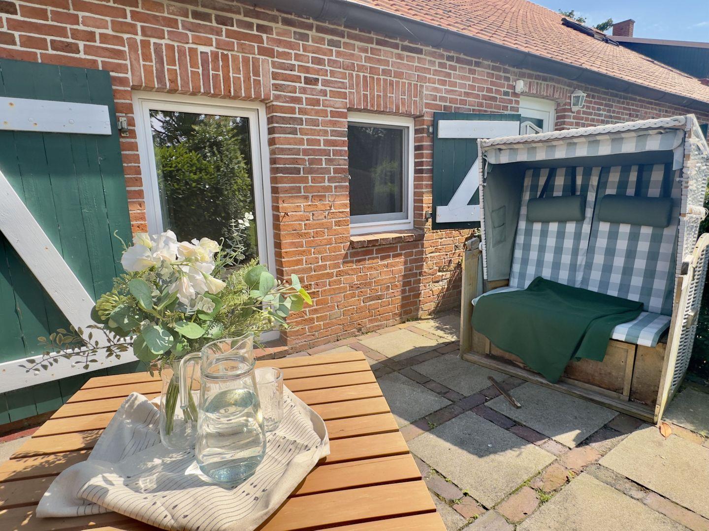 Charmantes Apartment Groot Kostall mit privater Terrasse und Gartenblick in Neuharlingersiel.
