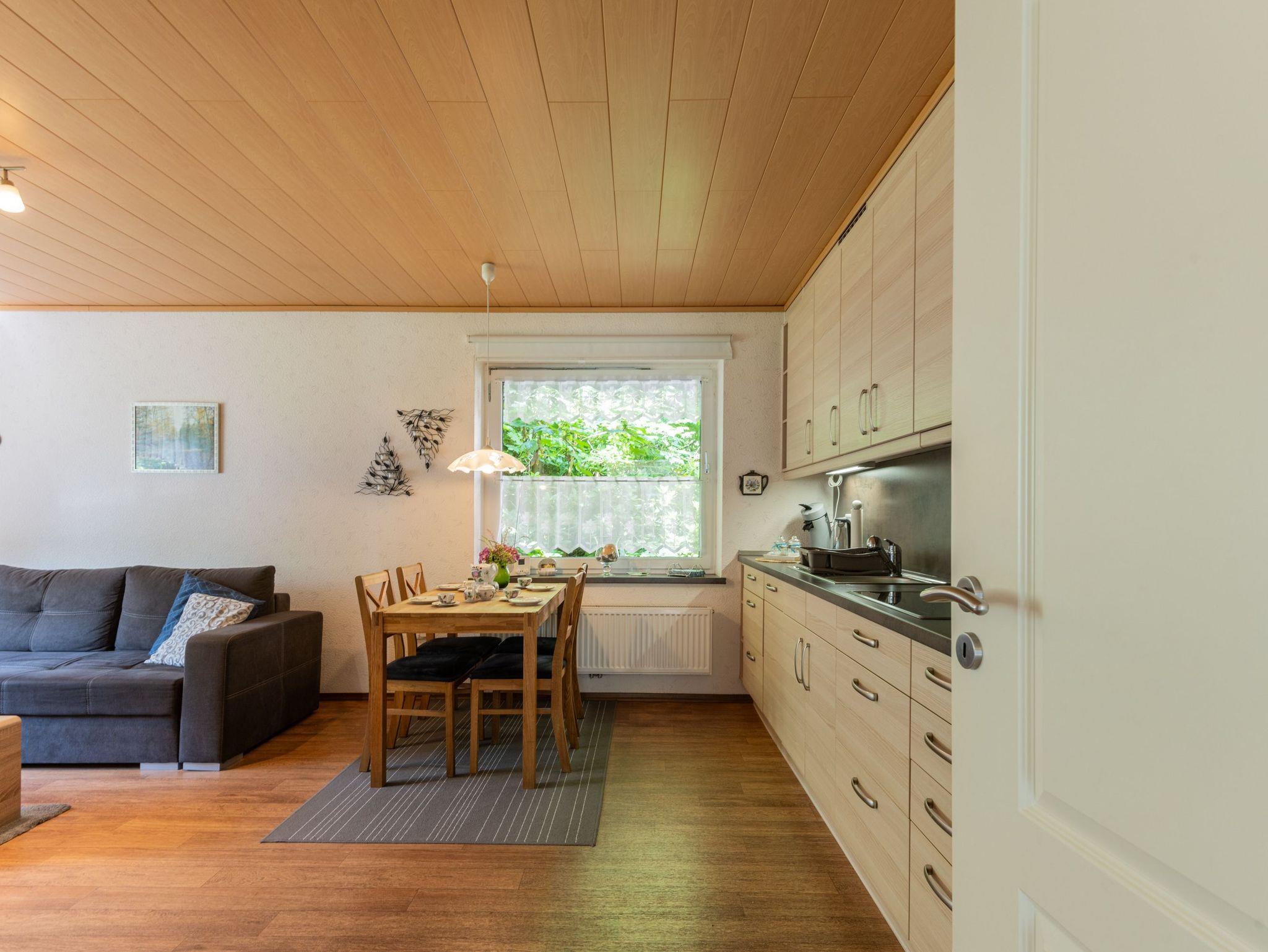 Ruhig gelegene, schön eingerichtete Ferienwohnung im Erdgeschoß. Keine Stufen im Eingangsbereich, daher auch für Rollstuhlfahrer geeignet. Große Wohnküche mit einer gemütlichen Sitzgarnitur/Schlafcouch (1,60 x 2,00 m), einer komplett eingerichteten und modernen Einbauküche mit Spülmaschine, Mikrowelle, Gefrierschrank, ... und einem Esstisch mit vier Stühlen. Ein großes Schlafzimmer großem Schrank und einem Doppelbett (2,00 x 1,80 m) zusätzlich befindet sich dort noch ein Kinderbett (Fliegengitter vor dem Fenster). Das Badezimmer ist ausgestattet mit einer Badewanne, Dusche und einer Toilette. Im Garten befindet sich eine Terrasse mit einer Gartengarnitur und zwei Gartenliegen. Den Gästen steht ein separater Abstellraum mit Waschmaschine und Trockner (Nutzungsgebühr 5,00 EUR) zur Verfügung. Für Angler gibt es mehrere Angelgewässer in der Nähe - Gastfischereierlaubnisscheine erhalten in örtlichen Tourist-Information.