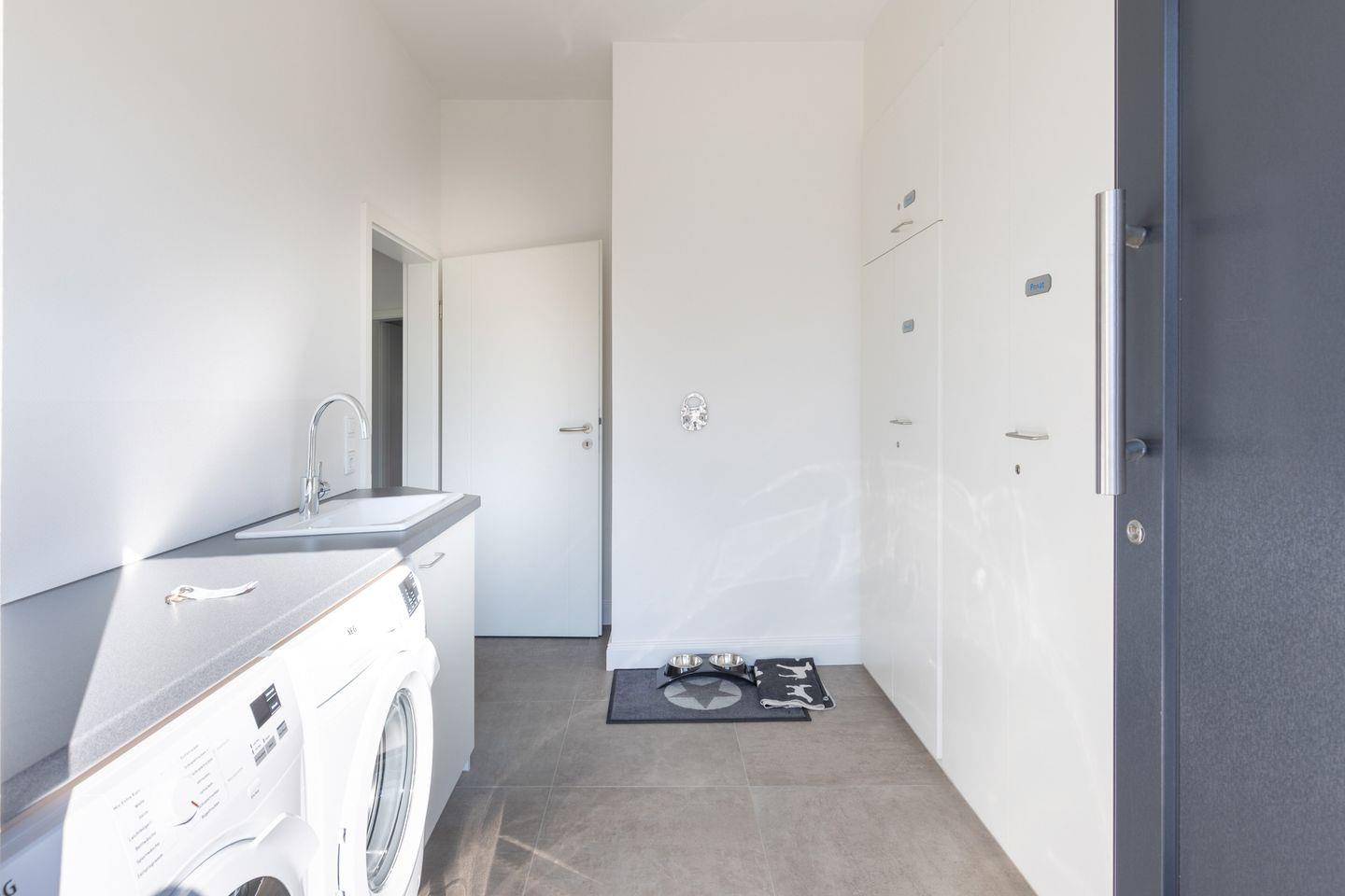Das Gäste-WC und ein Hauswirtschaftsraum mit Waschmaschine und Trockner (Gebühr 3,00 € pro Waschgang) runden das Bild ab. Das gesamte Haus wird über eine Fußbodenheizung erwärmt.