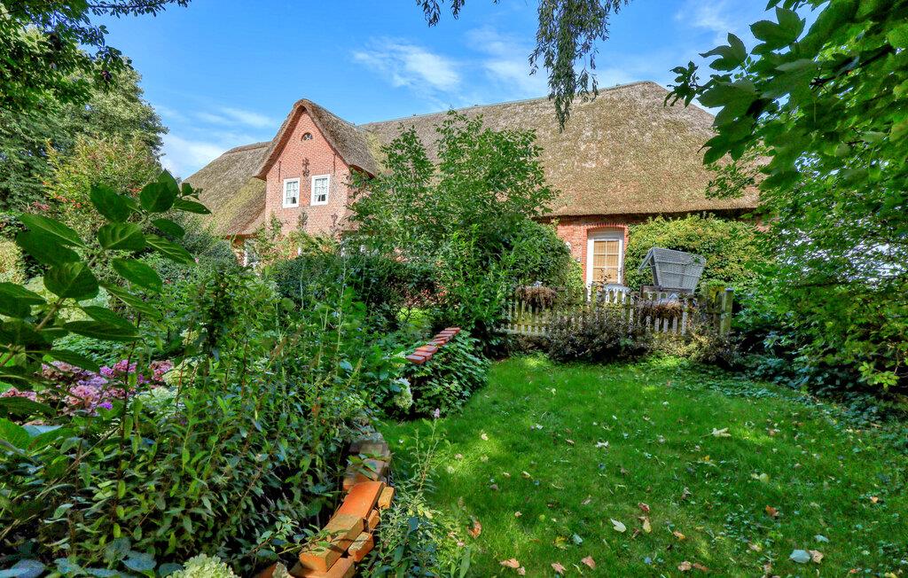 Charmante Ferienwohnung mit friesischem Reetdach und idyllischem Garten in Galmsbüll, ideal für einen ruhigen Urlaub zu zweit.