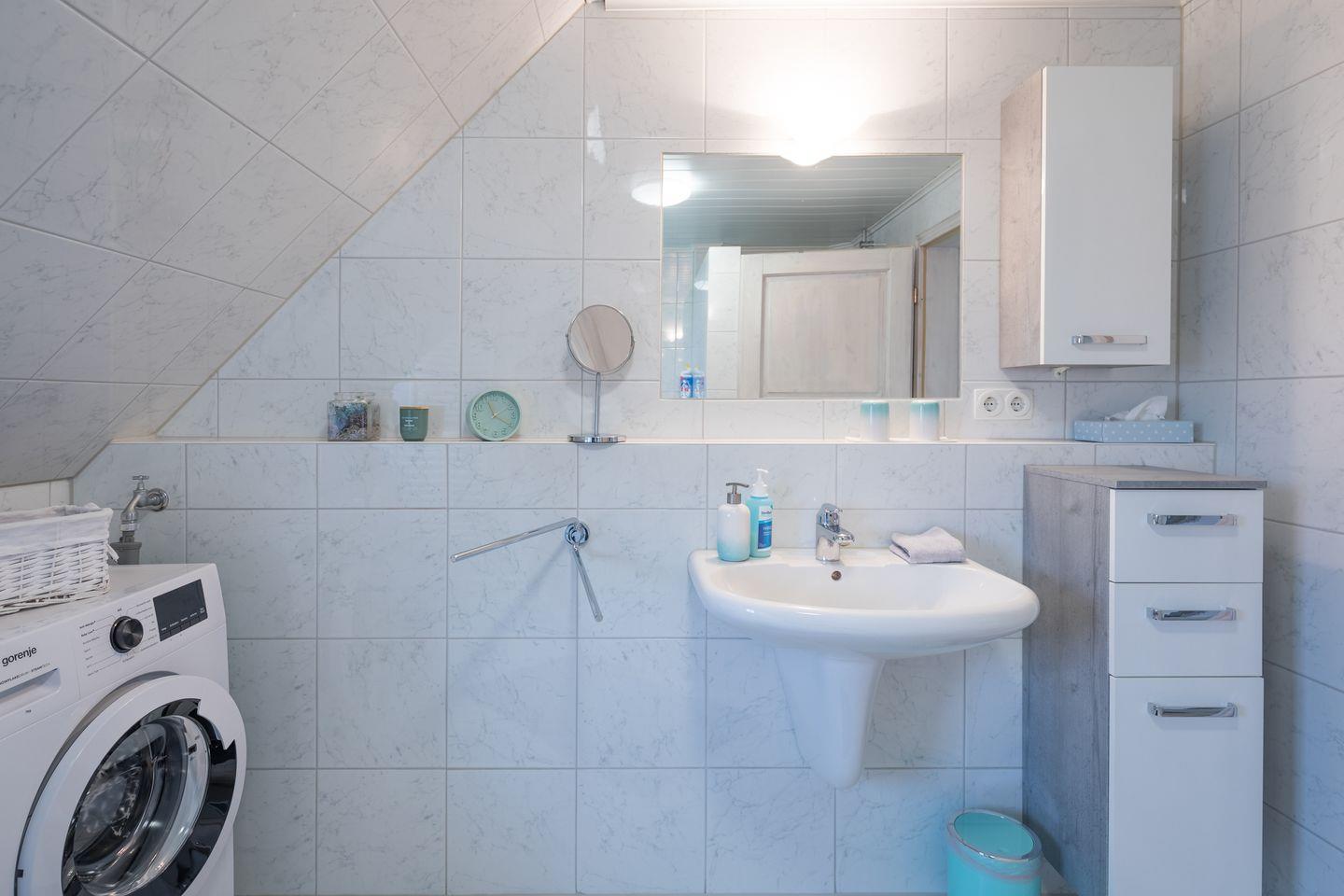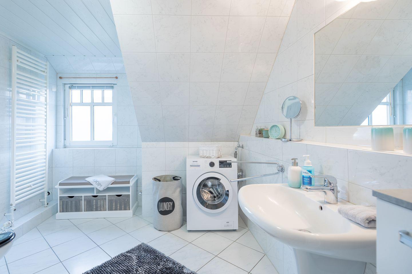 In dem hellen Duschbad steht Ihnen eine Waschmaschine zur Verfügung.