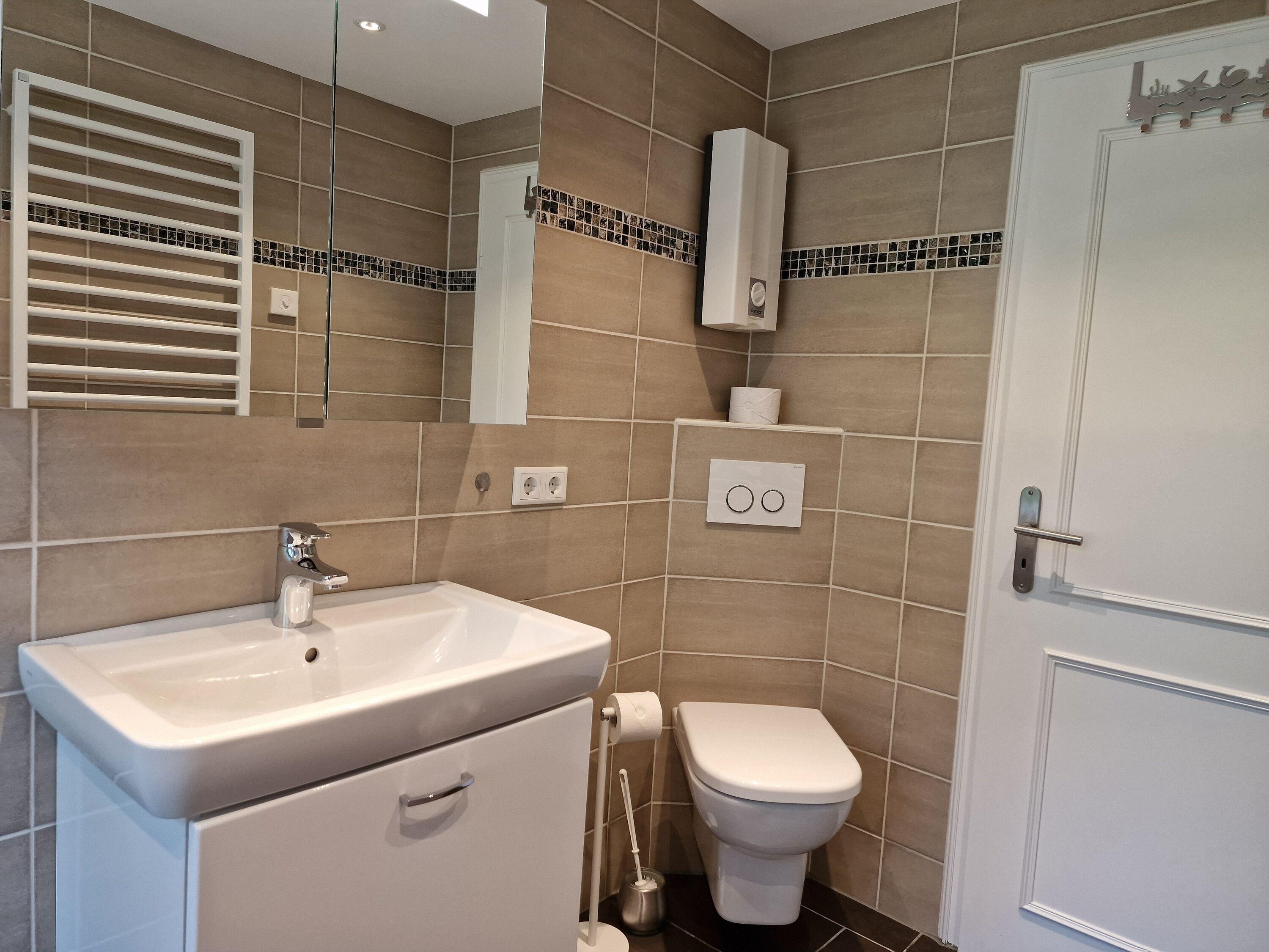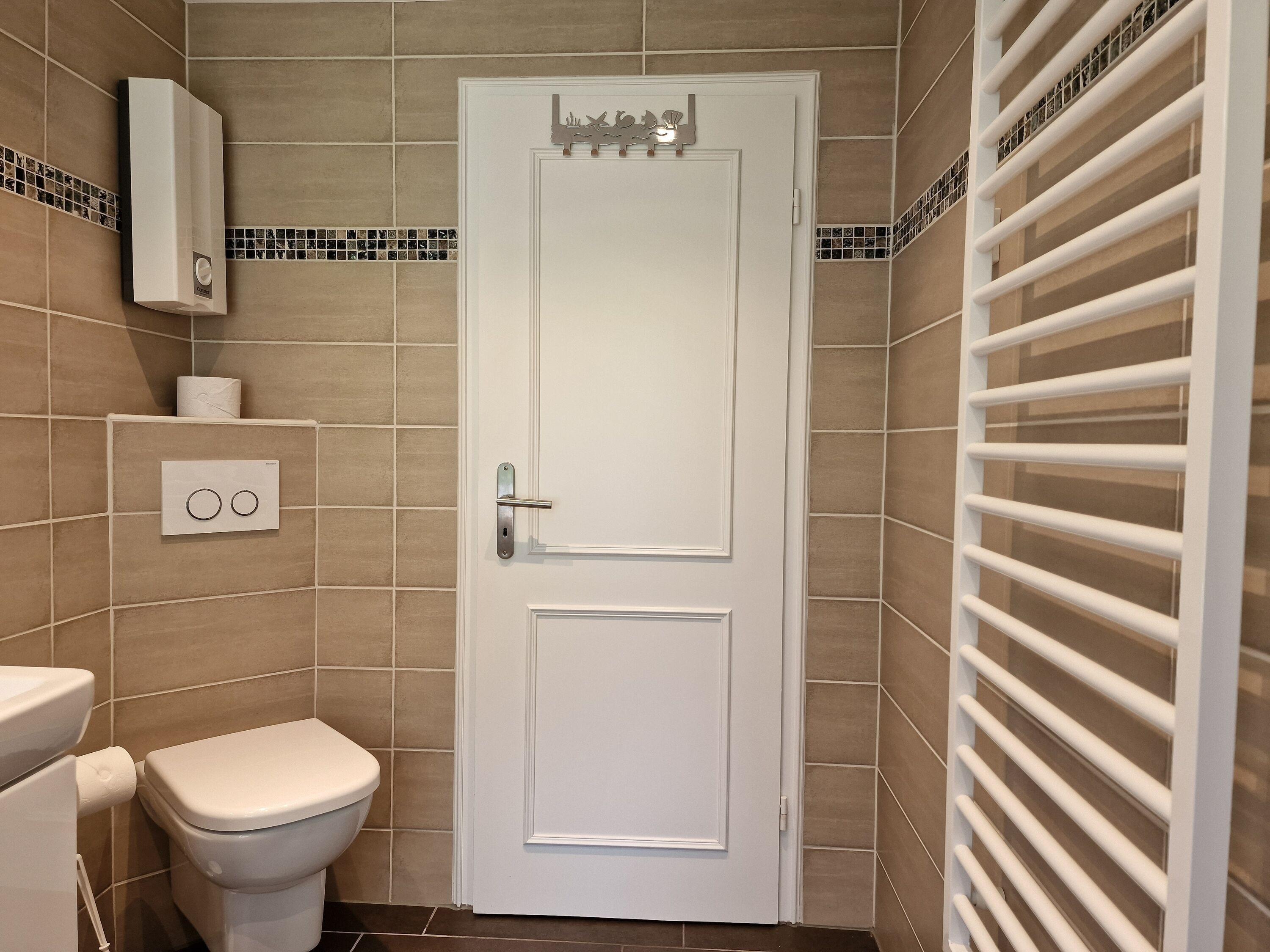 Die Wohnung befindet sich im Erdgeschoss. Es gibt eine voll ausgestattete Küche mit Esstisch, eine gemütliche Couch, ein Kaminofen für kühle Abende, ein Schlafzimmer mit TV und ein Duschbad. Auf der Terrasse mit angrenzendem Garten sind Sitzmöbel und ein Strandkorb (während der Saison) vorhanden. Bei der Couch im Wohnzimmer handelt es sich um eine Schlafcouch - so können 2 Personen auch getrennt schlafen. Im Keller stehen Waschmaschine und Trockner gegen Gebühr zur gemeinschaftlichen Nutzung zur Verfügung.