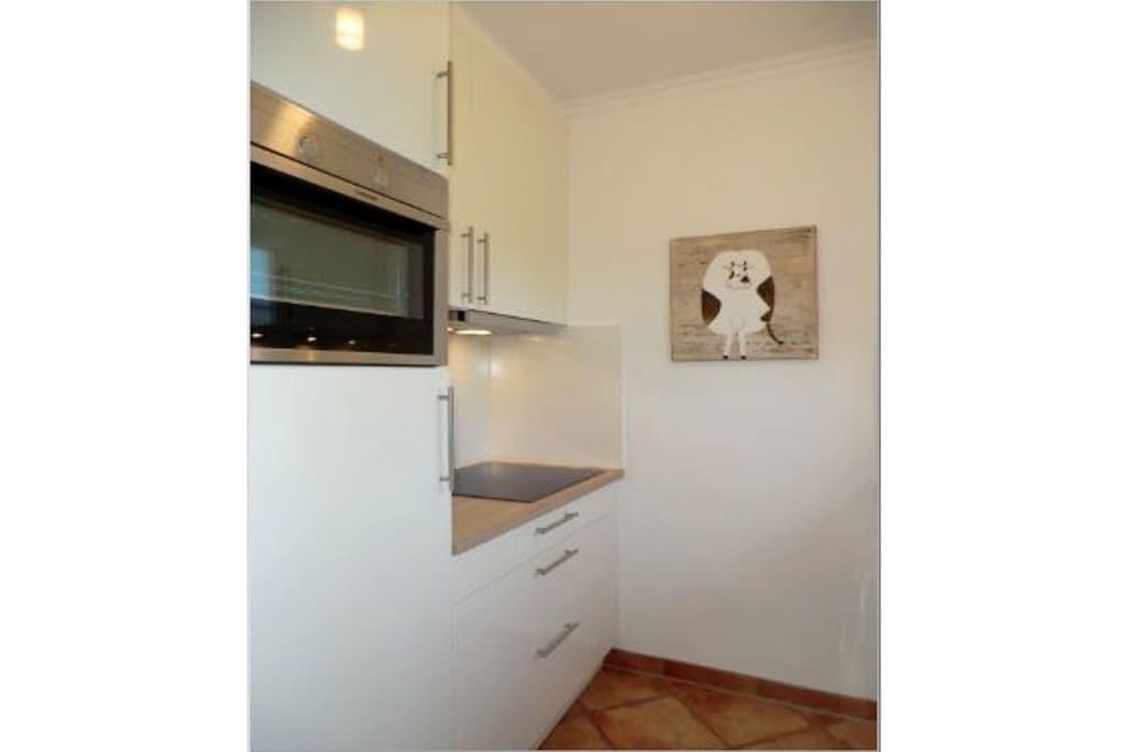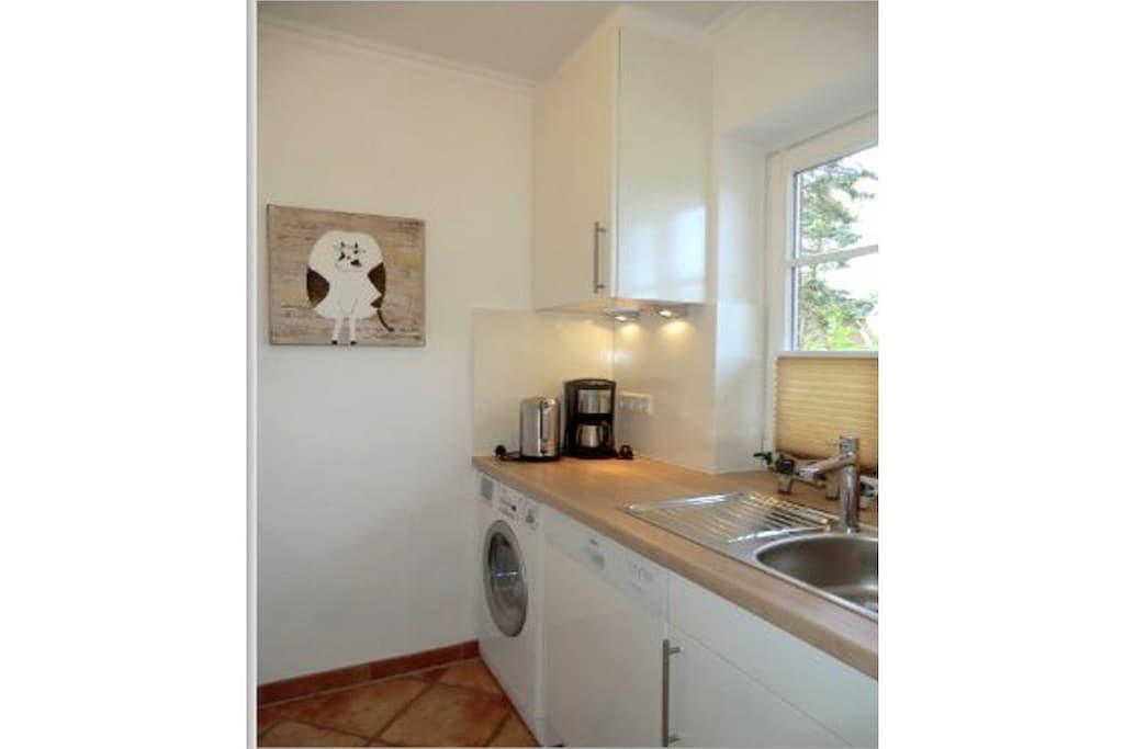 In der 1. Etage: (Schlafzimmer(, Doppelbett, TV), Schlafzimmer(, Einzelbett, Einzelbett)) , , Küche(Kochplatte, Kochherd, Backofen, Kühlschrank, Waschmaschine), Wohn/Esszimmer(, TV, Esstisch), Badezimmer(, Toilette, Dusche, Waschbecken), Internet, Trockner, Waschmaschine, Heizung, Terrasse(Gartenmöbel, Liegen), Parkplatz, Bügelbrett, Bügeleisen, Trockenschrank