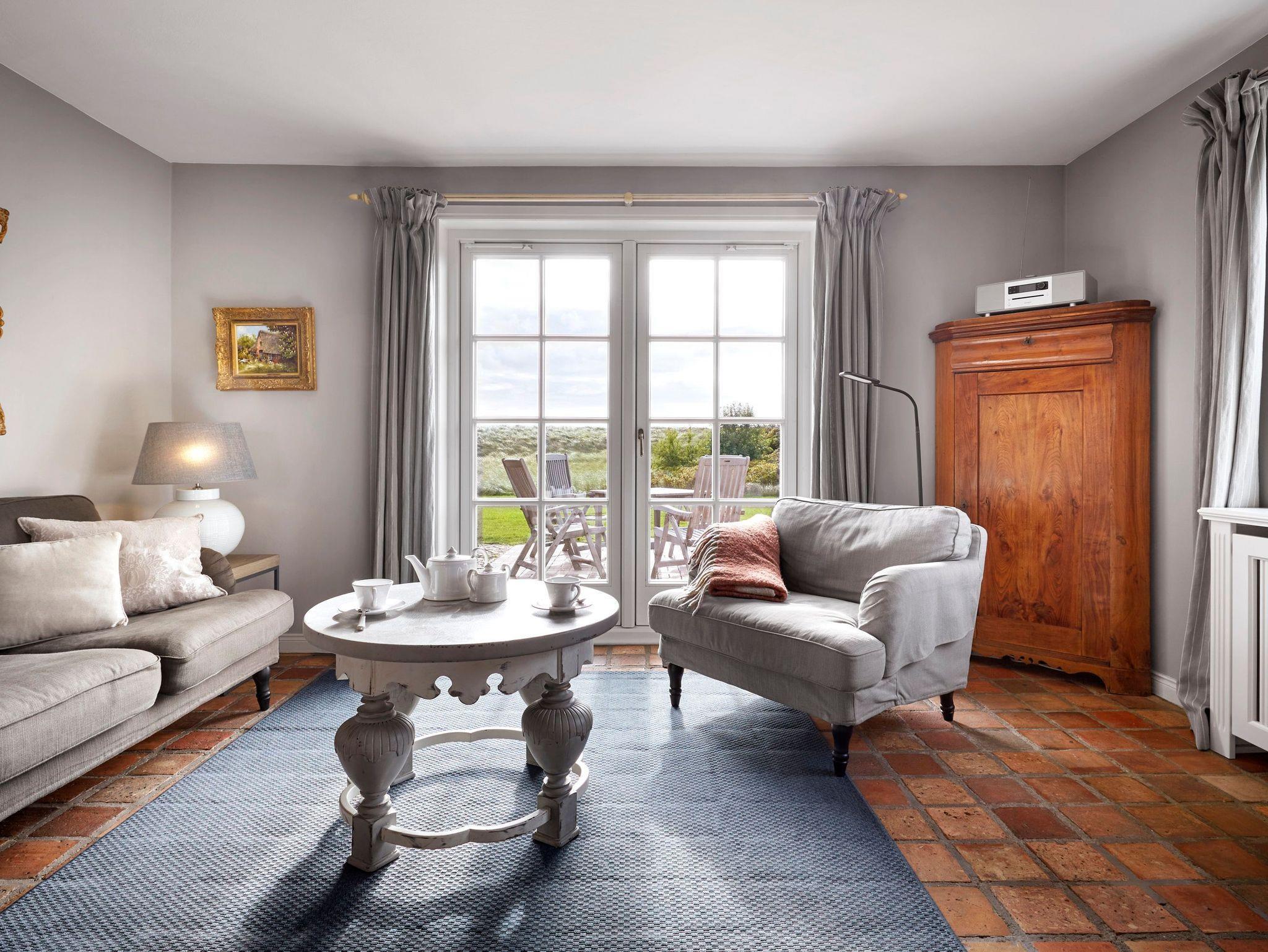 Die Terrassen liegen direkt hinter der Düne und sind gut voneinander getrennt. Im Strandkorb können Sie schon die ersten Sonnenstrahlen im Frühling genießen. Vom Haus haben Sie einen direkten Zugang zum Strand. Das Haus selber ist im Erd- und Untergeschoss mit schönen antiken Terrakottafliesen ausgelegt, in jeder Hälfte sorgt ein Mylin Kachelofen im Herbst und Winter für wohlige Wärme. Zu welcher Jahreszeit Sie auch immer hier Urlaub machen - die Erholung ist garantiert.