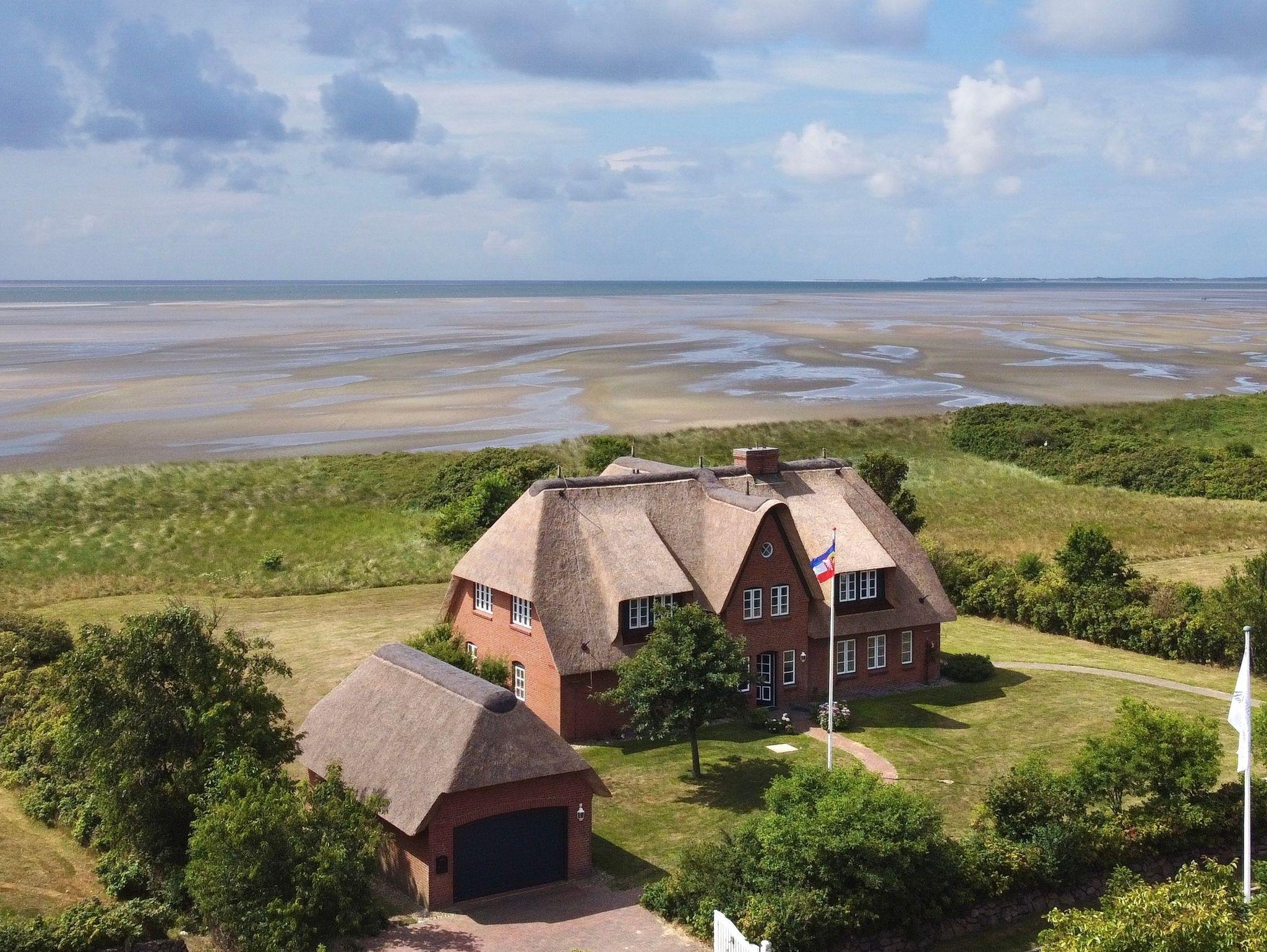 Wohnen Sie in der ersten Reihe am Meer ?direkt an der Düne in Bredland. Bredland gehört zu den besten Lagen auf Föhr und ist gehört zu Nieblum. Kleine „Warften“ prägen das Bild, und die Nordsee ist quasi „vor der Tür“. Das exklusive Reetdachhaus wurde 1992 erbaut und bietet aus dem Obergeschoss einen atemberaubenden Meerblick auf die Nordsee und die Halligen.