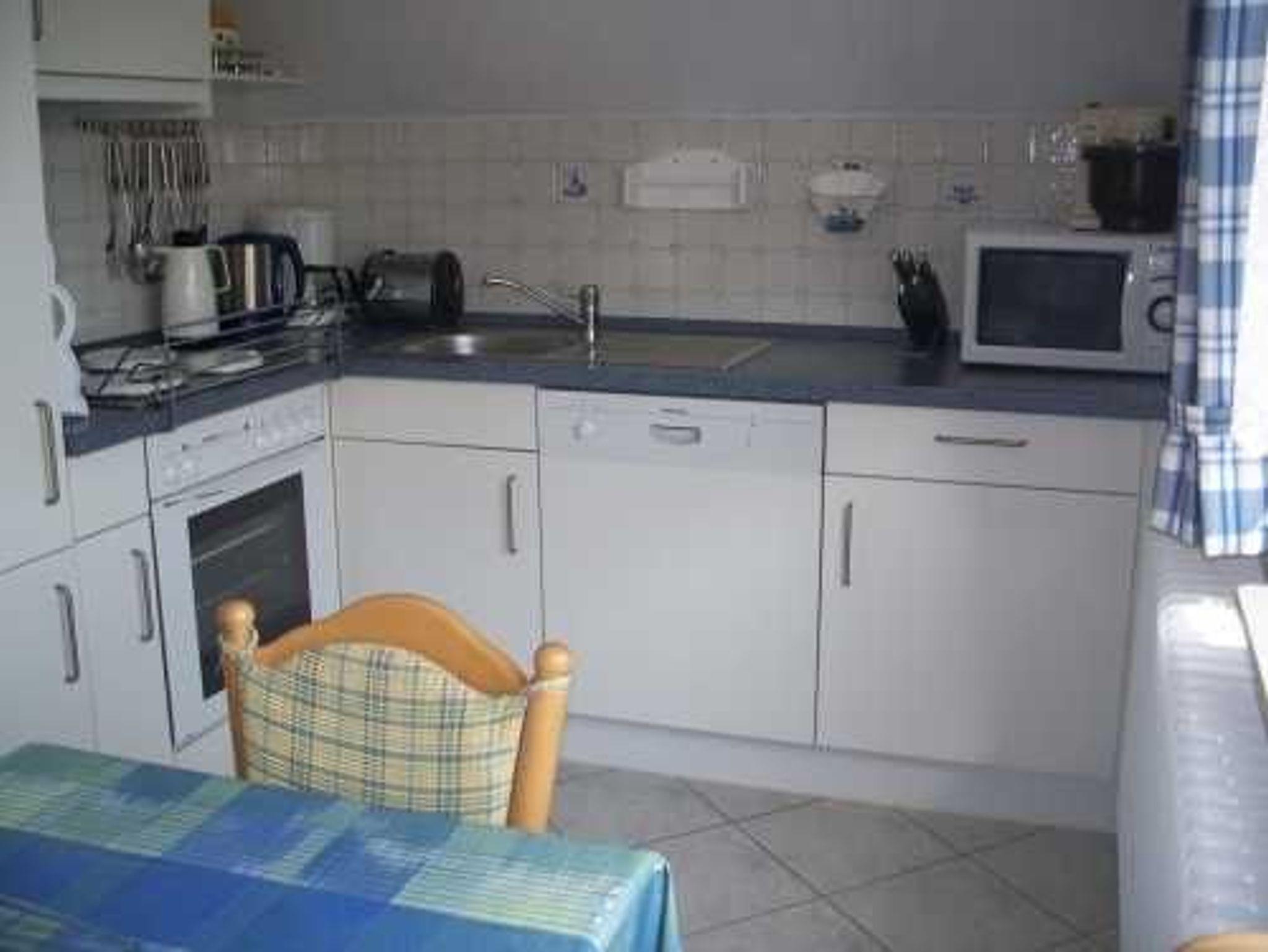Gemütliche Ferienwohnung in ruhiger Lage, 200 m vom Strand mit Terrasse, Strandkorb und teilweisem Meerblick.