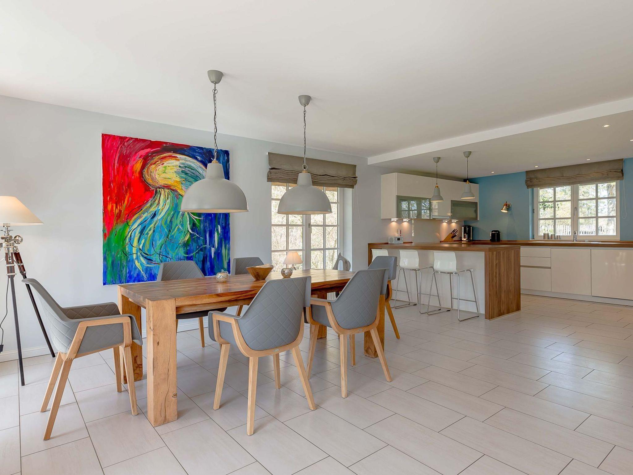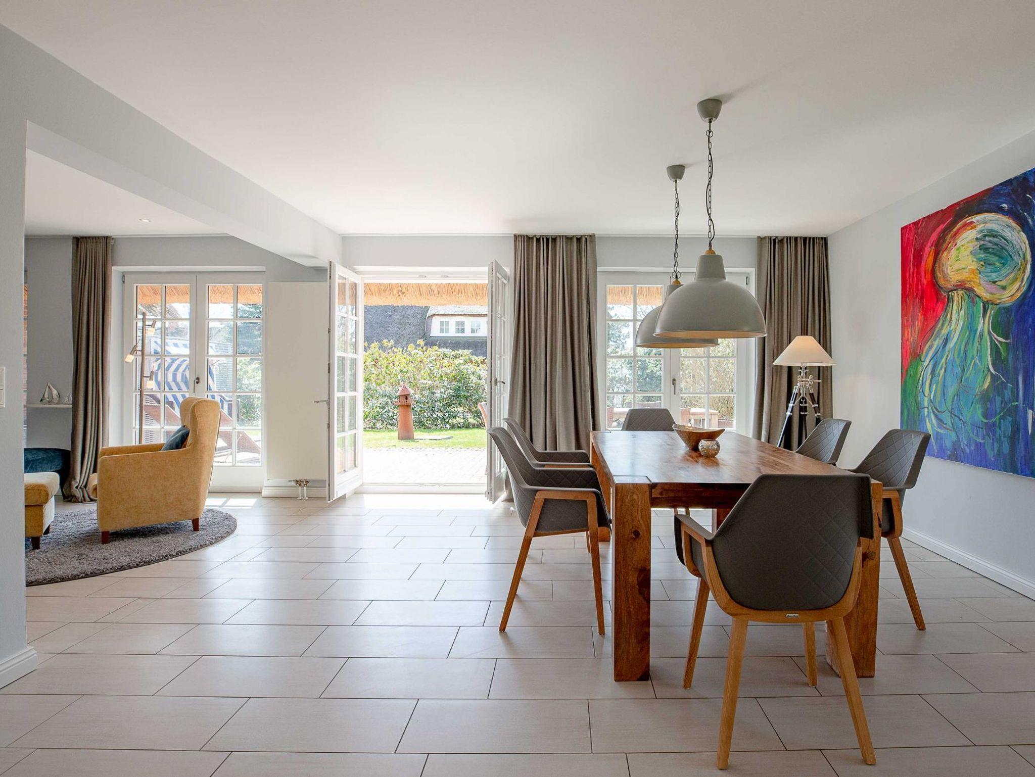 Unser Landhaus Bredland teilt sich in zwei separate Haushälften - Ost und West. Das eingewachsene Grundstück und die ruhige Lage machen Ihren Urlaub zum Wellnessprogramm. Helle Wohnräume, moderne Bäder, ausgewählte, warme Farben und große Fensterflächen kennzeichnen den Stil des Hauses. Genießen Sie die kühlen Abende am Kachelofen oder entspannen Sie in der großen Sauna mit angrenzendem Relaxbereich und sichtgeschützter Bangkirai-Terrasse. Für die Sommermonate lädt der Garten zum Erholen ein. Mit einem kurzen Spaziergang gelangen Sie zum Strand - die Nordsee liegt fast der Tür. Auch der Golfplatz ist in kurzer Zeit zu erreichen. Seien Sie unser Gast und verbringen unvergessliche Urlaubstage im Landhaus Bredland!