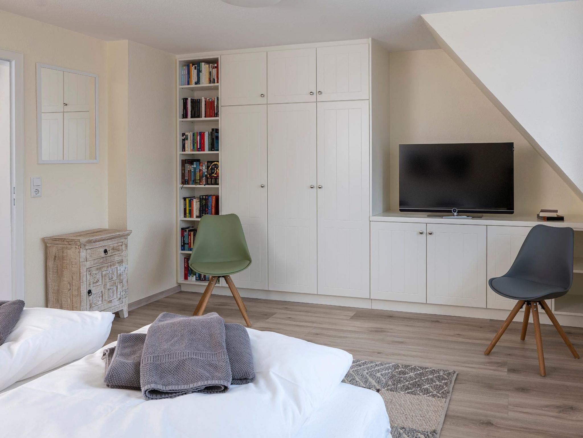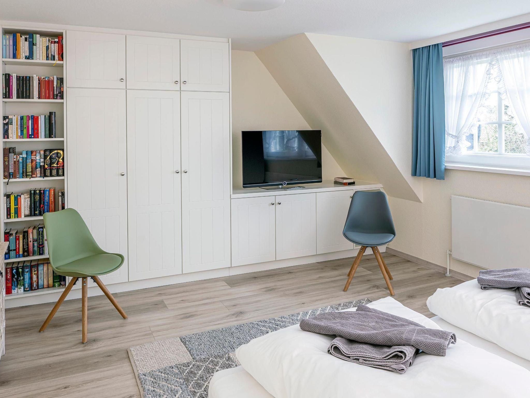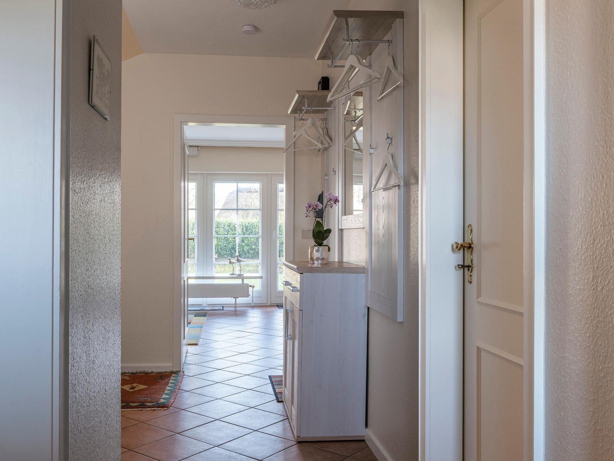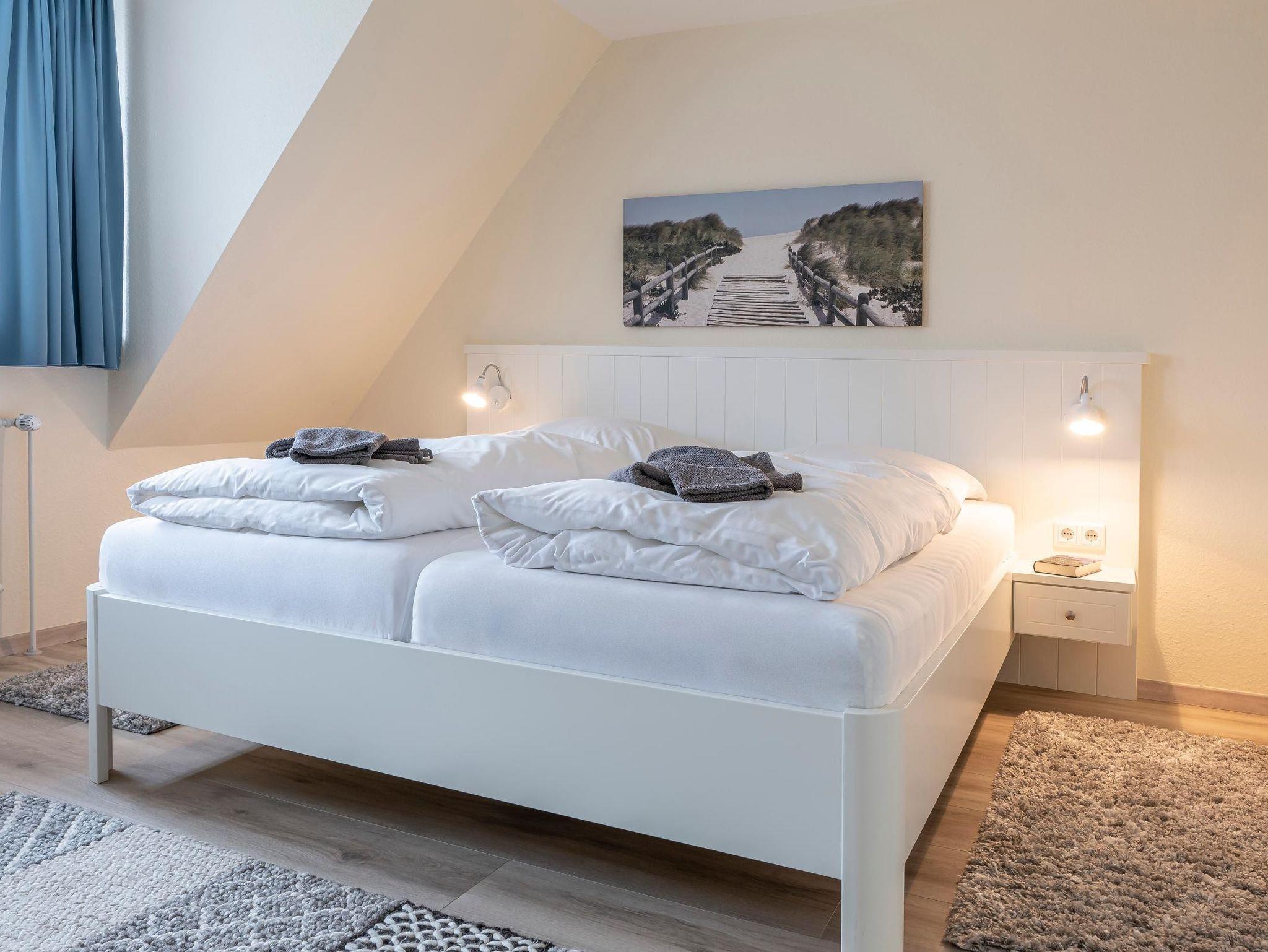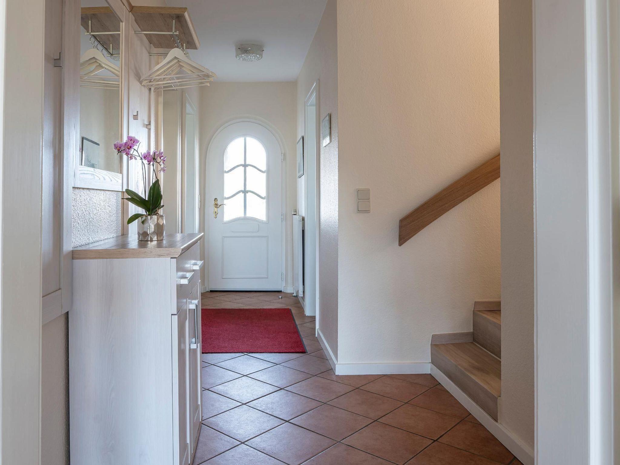 Unser schönes Feriendomizil bietet Ihnen im Erdgeschoss: separate Küche mit kompletter Ausstattung ( z.B. Nespresso Maschine ) , sep. Abstellraum mit Waschmaschine und Trockner, Gäste WC, großes Wohnzimmer mit Smart TV und einem großen gemütlichen Ledersofa sowie Essbereich. Von hier aus haben Sie Zugang zum Garten mit Gartenmöbeln und Liegen.Im Obergeschoß befinden sich: Schlafzimmer 1 mit großem Doppelbett, Smart-TV und Einbauschrank, Schlafzimmer 2 mit zwei Einzelbetten und Einbauschrank. Das Badezimmer hat eine bodenebene Dusche.