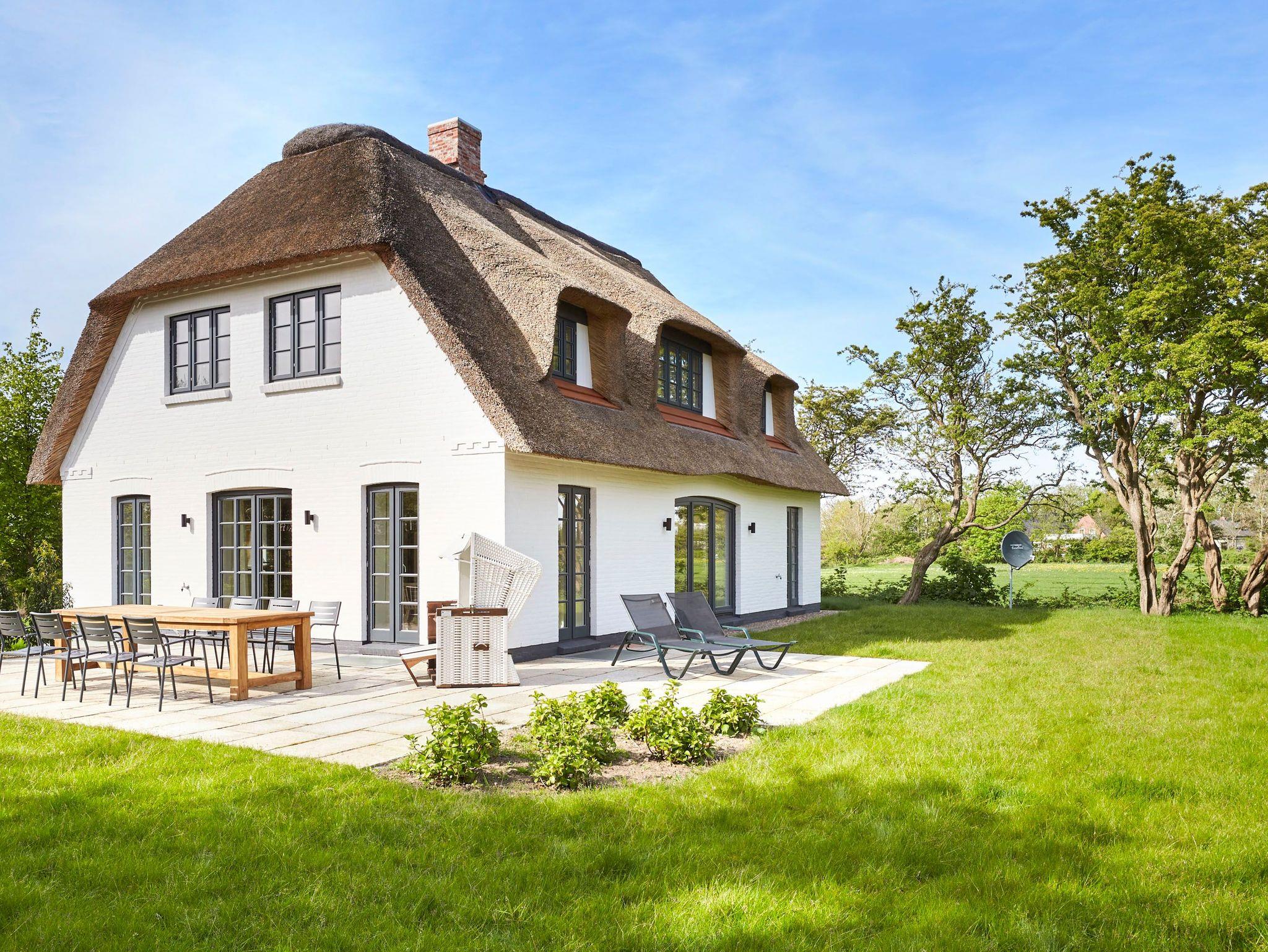 Das reetgedeckte Ferienhaus Wit Parel in Nieblum bietet Ruhe, Komfort und einen herrlichen Blick auf die Felder.