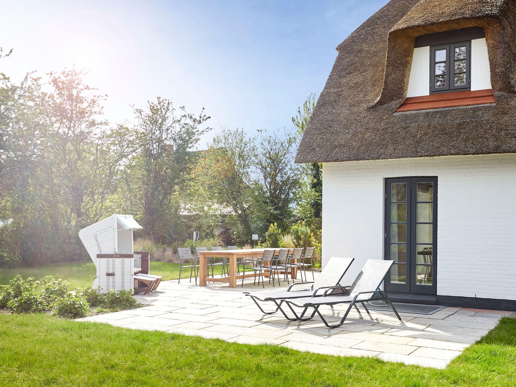 Das wunderschöne reetgedeckte Einzelhaus 'Wit Parel liegt ruhig in einer Sackgasse am Dorfrand des zauberhaften Nieblums und bietet einen herrlichen Blick über die Felder. Nieblum, eines der schönsten Dörfer von Föhr, verleiht diesem außergewöhnlichen Reethaus eine besonders malerische Kulisse, die Ruhe und Erholung verspricht. Mit dem Fahrrad sind es nur 10 Minuten zum Strand.
