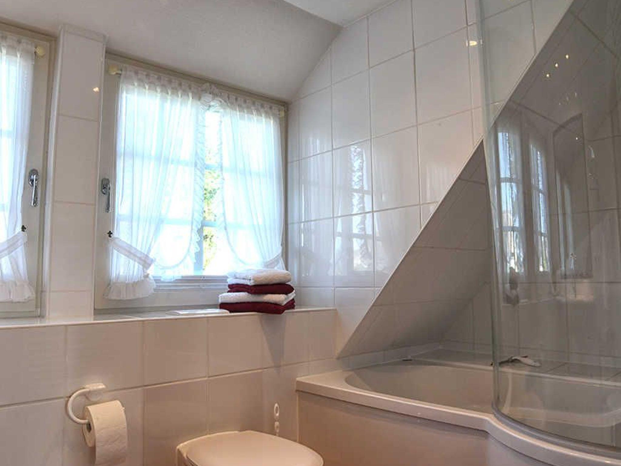 Im oberen Bereich finden Sie zwei Schlafräume mit je einem Doppelbett. Außerdem befindet sich auf dieser Ebene ein Dusch-/Wannenbad. Im Hauptschlafzimmer befindet sich ein zweiter Fernseher.